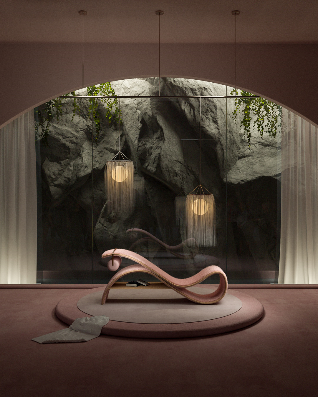 这个毛巾椅是 Paul Milinski 的单品设计,流畅的线条散发着温婉优雅的气质,柔软的布料带来了舒适触感,整体造型与周围环境也相辅相成。