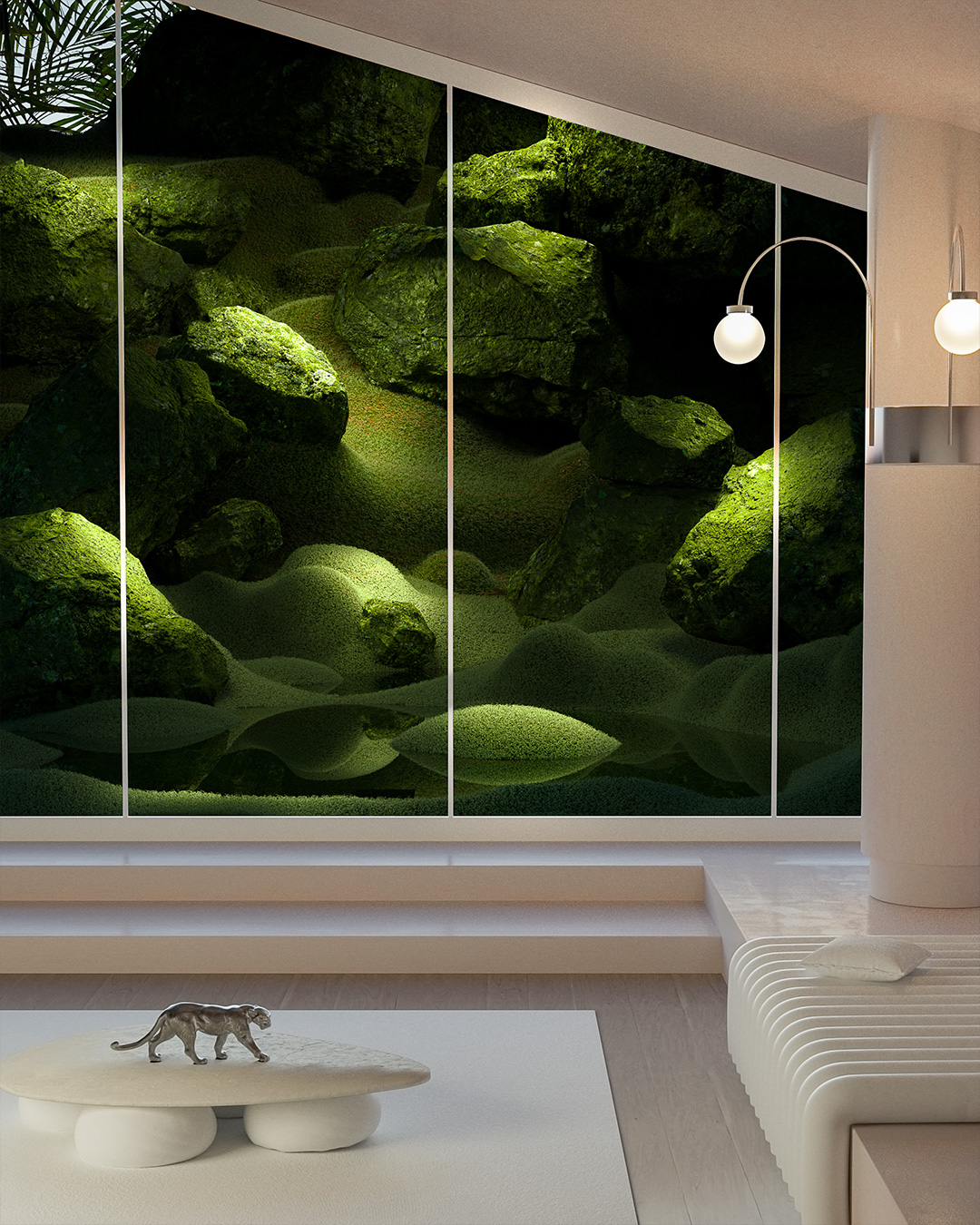 设计师将自然景观搬进室内,放大了郁郁葱葱的植物和岩石的存在,让你不知身处室内还是身处在大自然中。