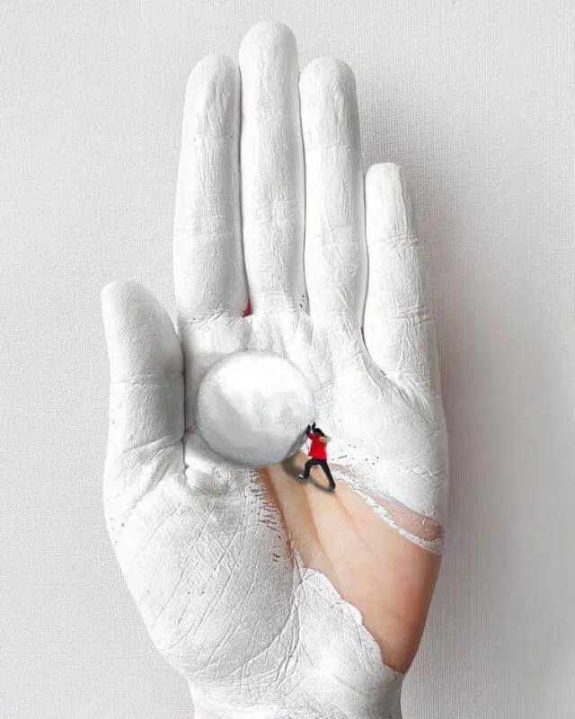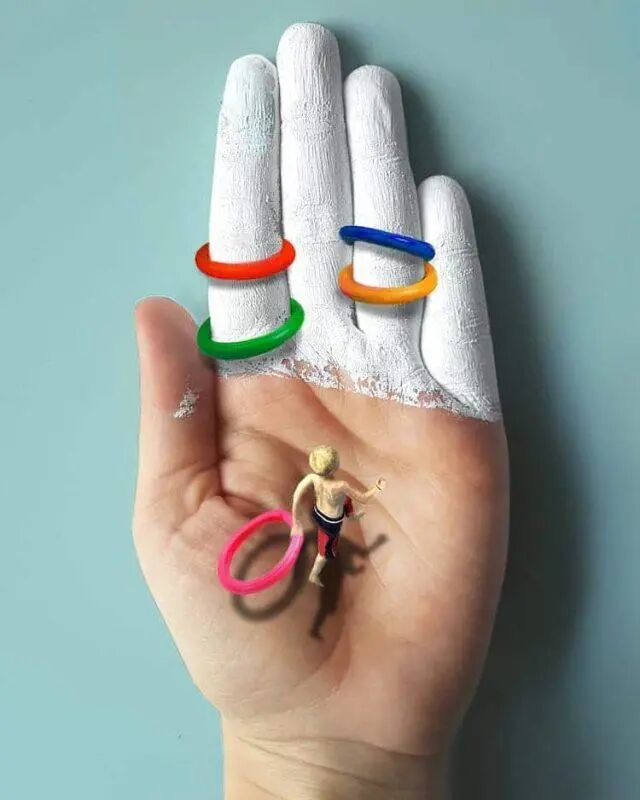 来自意大利的女画家戈尔萨·戈尔奇尼,也选择了在自己的身上画画,只不过她挑的部位更特别,那就是她自己的手心。巴掌大的地方,能画出什么内容呢?滑雪、套圈、荡秋千......一系列动感十足的场景,被她描绘得生动且逼真,每一幅画作的色彩都很丰富,细节也很逼真,带给人非常强的3D感,这些小画看上去,就像是一个个真实的趣味场景。