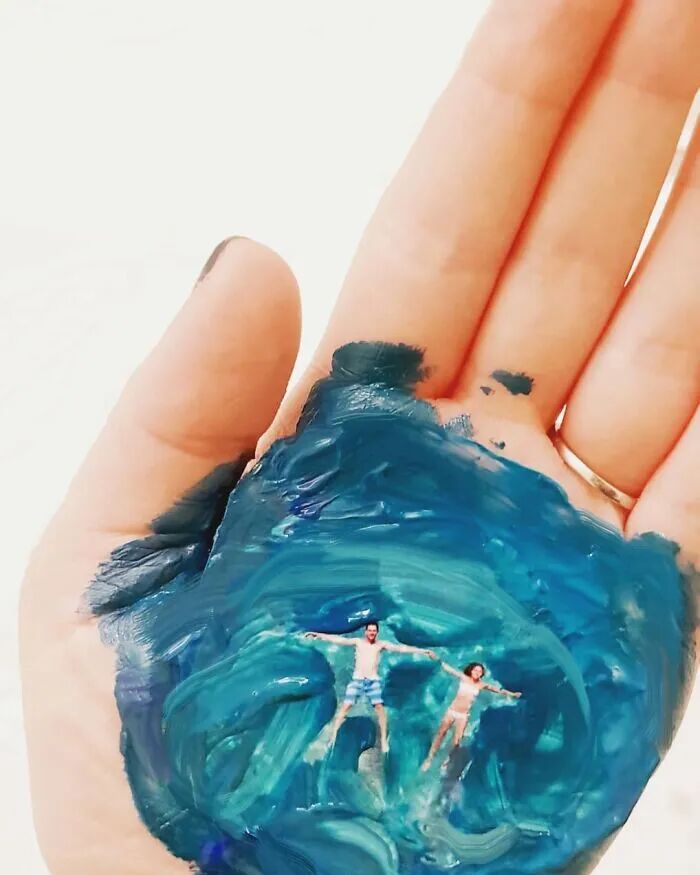 创作手心微型画,其实是她的一种解压方式,每当她遇到工作上的瓶颈时,就会在手心里随意画些什么,其实,这位艺术家不仅在自己的手心里画画,可以说,任何她能想到的地方,都有可能成为她的画布,手背、书本、雨伞,甚至她还会在她的笔刷上画画,独特的3D画作惊掉你的下巴。