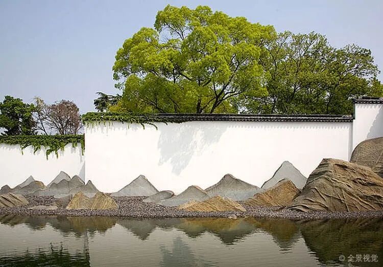 传统苏州园林以一堵围墙为限,以庭院为重心,将亭、台、楼、阁、山、水、石、花等组合在一起,形成一个高度浓缩的自然空间。如苏州园林的代表拙政园,它的前院有水池,水池旁建了一座凉亭,周围堆叠着石头;后院有山,有水,有林……