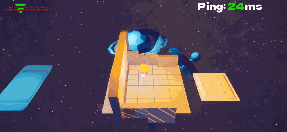 其中一个小组的作品名为《-PING》,PING即延迟,他们的玩法也跟延迟有关——游戏地图会因延迟而加载缓慢,角色移动过快会从地图上掉落进而失败;而角色本身也会因延迟而随机回退至两秒前的位置(回退位置会以光点标明),玩家必须利用好这个机制,才能顺利通关。