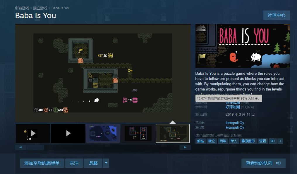 正是得益于Game Jam研发机制的优势,一些像《Baba Is You》《Evoland》《Reventure》这样极具创意,且在Steam好评如潮的独立游戏才会涌现出来。同时,也有不少知名游戏开发者,也会将Game Jam作为磨练技艺、寻找灵感的最好形式,例如《蜡烛人》制作人高鸣便是Game Jam的常客。