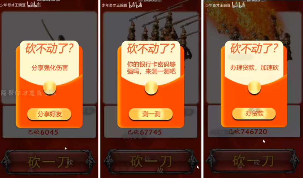 游戏中,玩家以领取礼包为目标,体验了一系列诸如看广告、分享好友、出售个人信息、贷款,甚至签订法人变更协议的「悲惨经历」……虽然题材荒诞,视觉演出也有些鬼畜,但这款游戏却相当符合本届CIGA Game Jam(下称CGJ)的开发主题——TRICK(欺诈、诡计、技巧)。