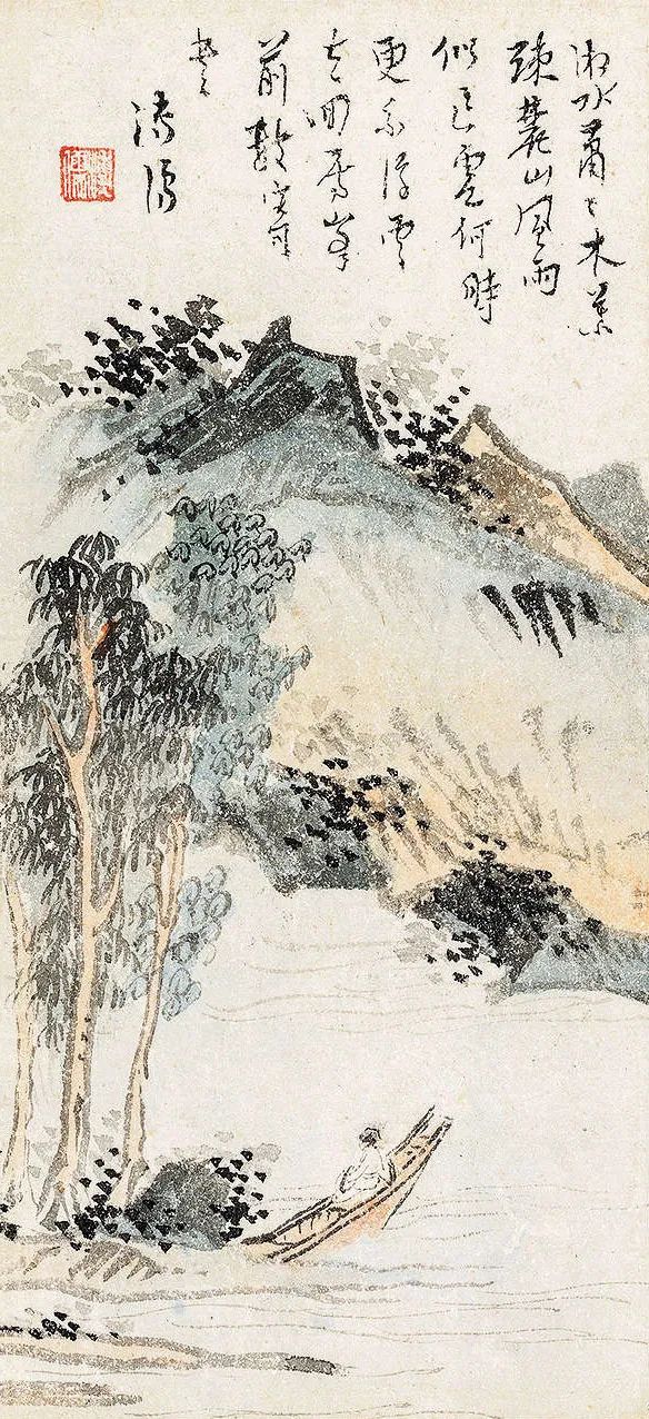 (一)孤峰万重烟树,扁舟十里横塘。世外青山碧水,镜中疏柳斜阳。心畬。
