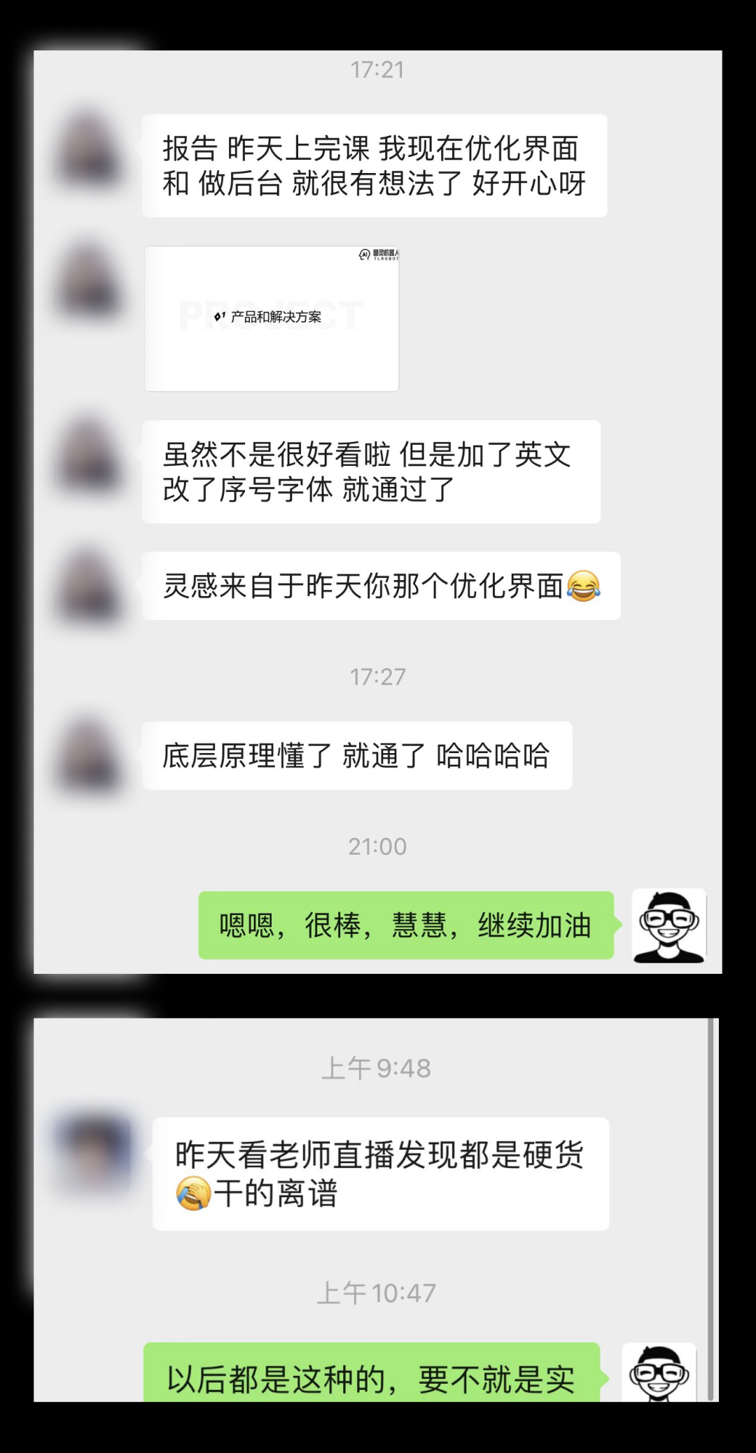 这是前几天听了直播的同学主动给我的反馈: