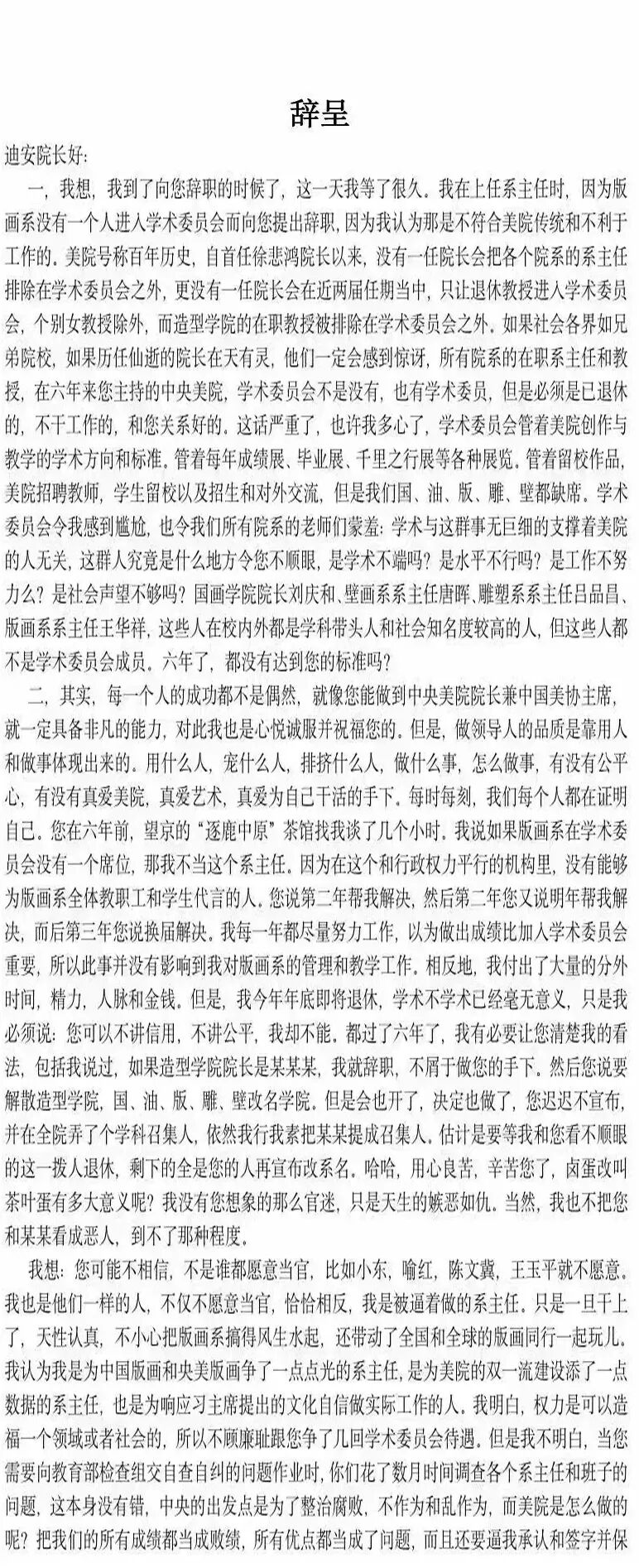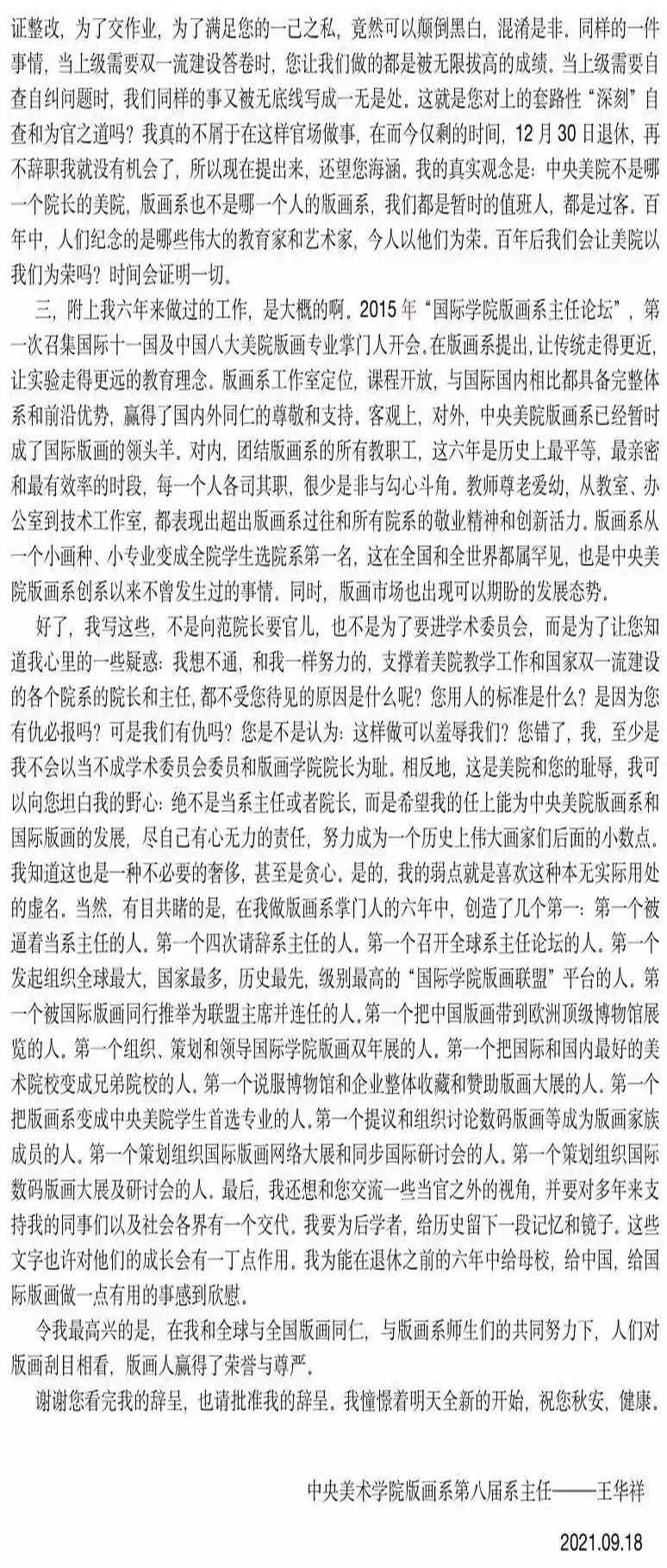 职场圈2023-07-08 这是耻辱 !王华祥第四次给央美院长写辞呈:这是美院和您的耻辱,我可以向您坦白我的野心 注: 王华祥,著名艺术家、艺术教育家。中央美术学院造型学院副院长、中央美术学院版画系主任,博士生导师、国际学院版画联盟主席、中国艺术研究院中国版画院副院长、万圣谷美术馆馆长、江苏版画院名誉院长、飞地艺术坊名誉校长。 范迪安,现任中央美术学院院长 ,全国政协委员、中国美术家协会主席、中国文艺评论家协会副主席、教育部艺术教育委员会副主任。 本文来自微信公众号“上海美术观察”(ID:pyyjb123)。大作社经授权转载,该文观点仅代表作者本人,大作社平台仅提供信息存储空间服务。 TAGS: 王华祥艺术辞呈 相关文章喜报|祝贺包少茂研究员当选…曝光上海某院欠薪不还的骚套…经济好转后,设计院好像更完…不多说了!TRASHGUN…万科一大批中层员工,集体离…建筑说转行56|享受“下沉…只工作不上班,诚招线上创作…阿尔敏·莱希 –…TOP地产设计院:该滚就滚知识型员工如何激励?是否适…