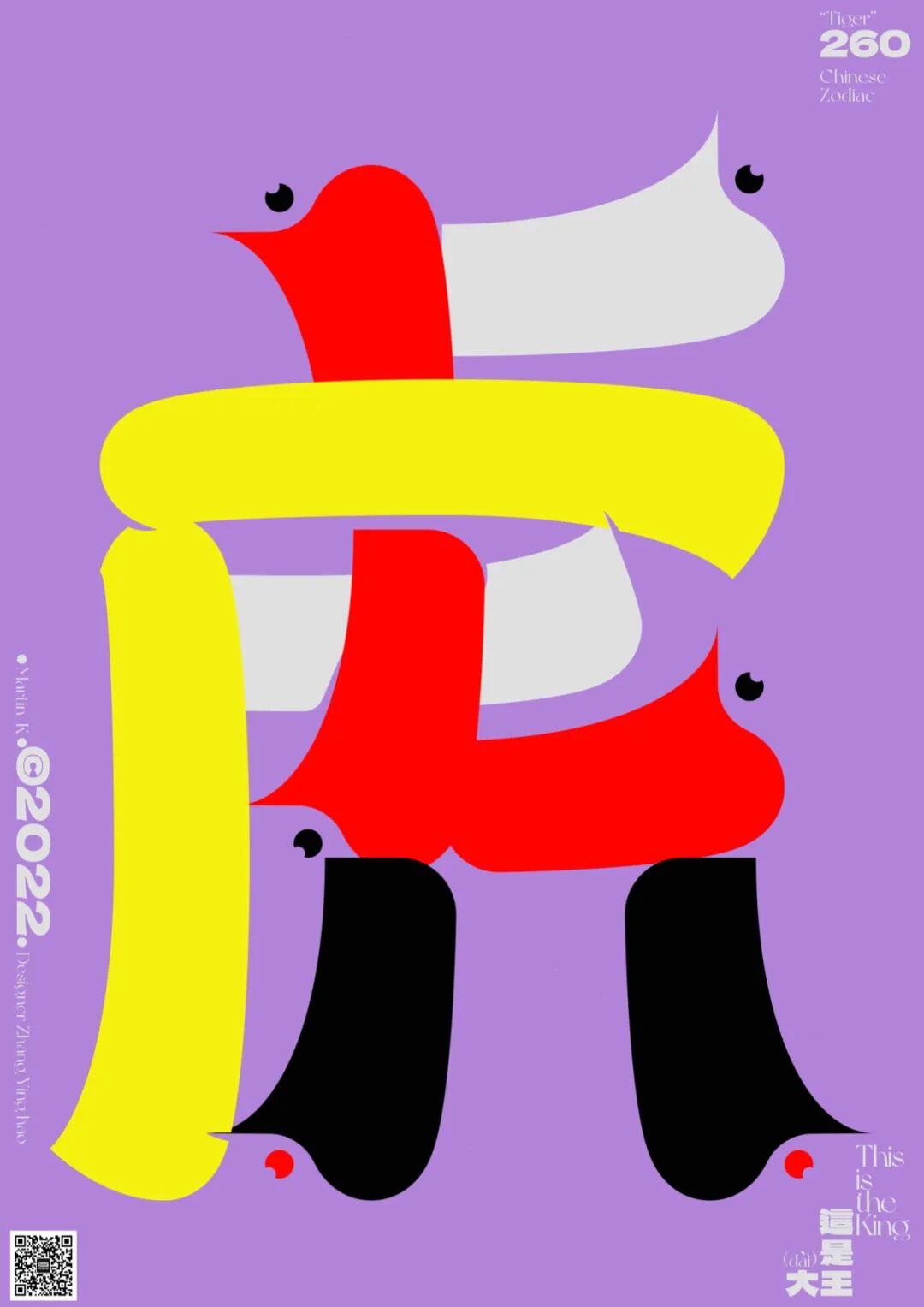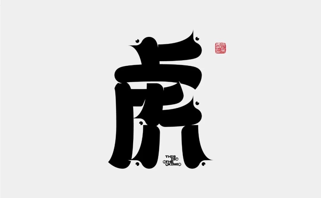 采用具有弧线不规则的笔画部件为基础,对两端分别进行柔和的处理,通过对末端进行鸟头的意象形态处理,使其突出的尖角既可以充当笔画部件的修饰特点,也可以让流畅的弧线表达出书写的走势,在配合负空间圆点的添加与笔画的特点形成更加具象的鸟头表现,赋予文字鲜明的生命力。