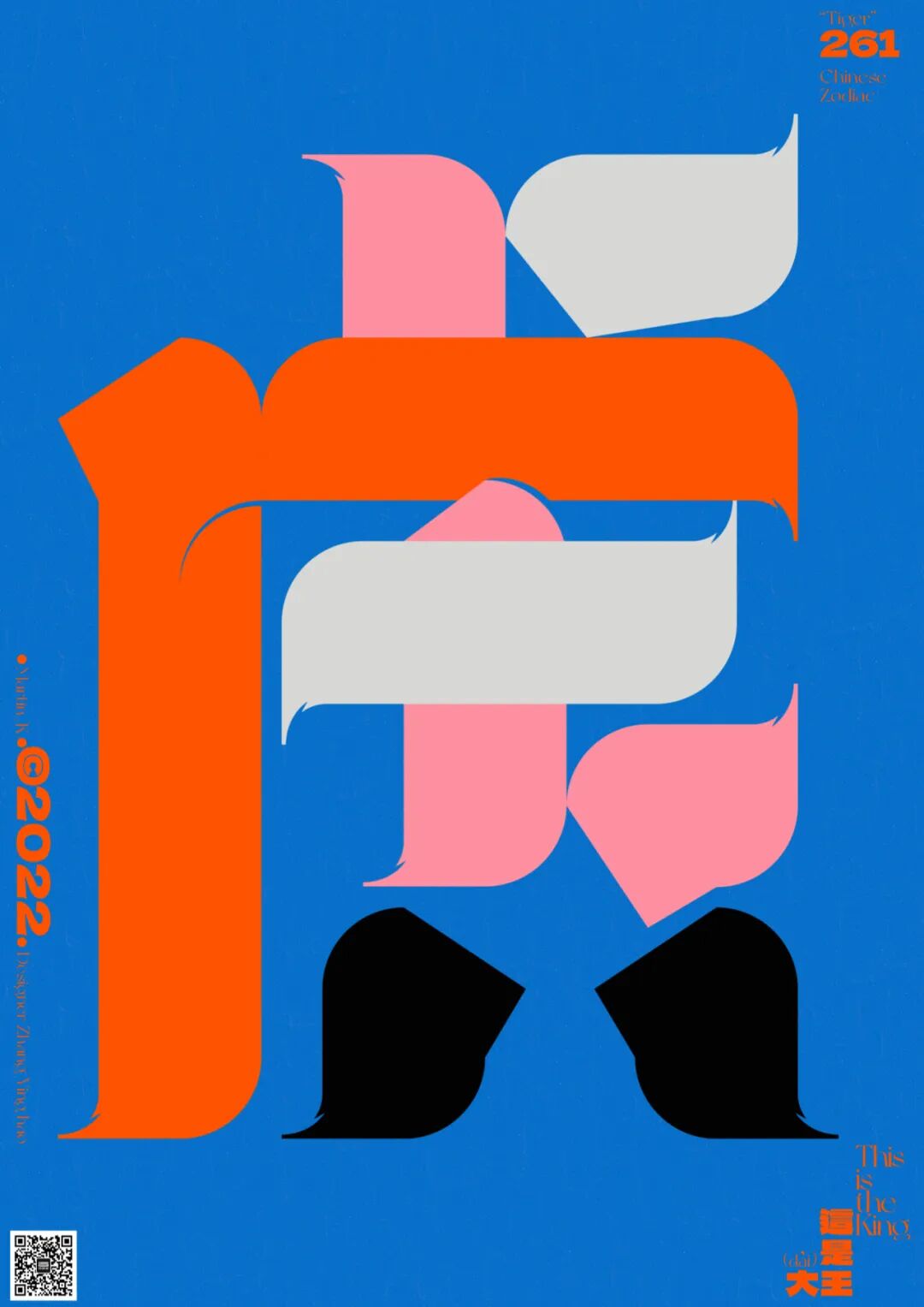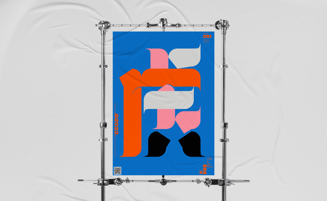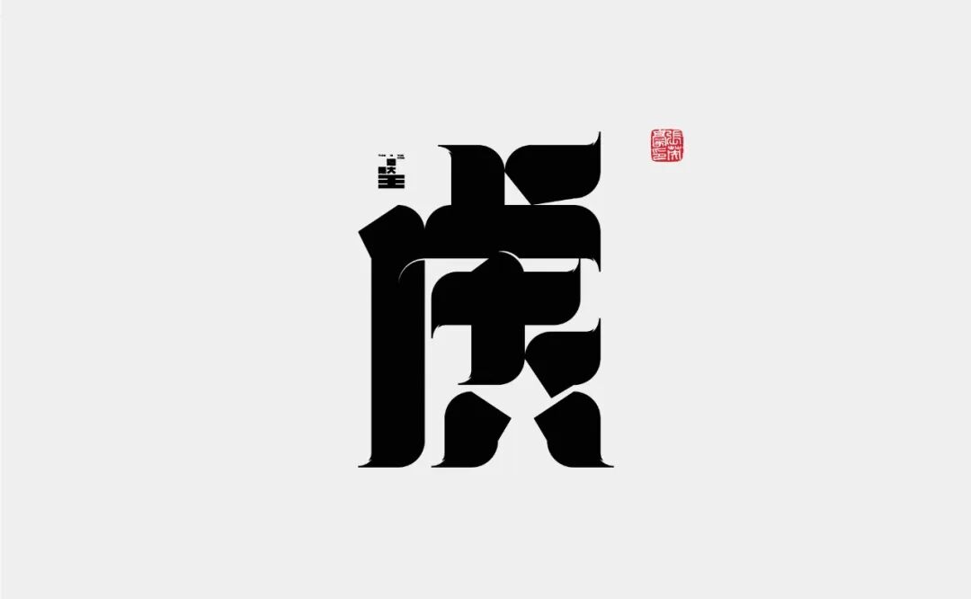 采用粗壮的笔画部件为基础,通过对收笔处进行细小的装饰处理和开口处理,使其与主干部件形成强烈的视觉对比,让弧线与装饰产生自然流畅的走势表现,与此同时在起笔处进行不规则的倾斜处理以及对交集处进行的负空间处理,使文字可以表达出一种像是穿着宽松外衣堆在一起的感觉,营造一种具有厚重的力量感和生命力。