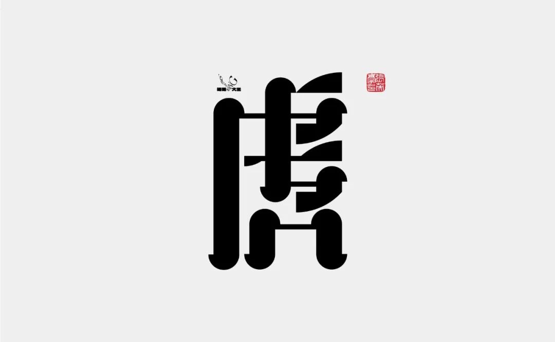 采用直线与曲线共存的特点对笔画部件的两端进行突出的修饰处理,同时融合半弧形的笔画部件与较粗的部件进行组合,在体现经典横细竖粗特点的情况下使文字具有鲜明的个性表现和多变的笔画部件表现,不仅保留了文字圆润柔和的特点,同时还赋予了其棱角分明的的装饰性特点,使文字具有丰富的视觉感受和意象的鸟形体现。