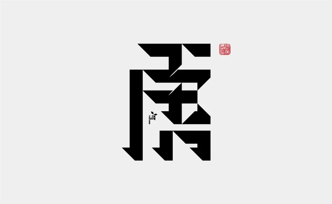 采用具有锋利特点的修饰性笔画部件为基础,利用其倾斜的特点及其所产生的残缺感按照熟悉规律和基本结构进行有效的组合,对拐角处以及末端进行特点的使用,使文字产生锋利的尖刀感以及回折的视觉感受,同时尽可能的对倾斜的角度进行有效的统一,不仅可以为文字营造一种共性的表现,还能为文字的稳定性提供依据。