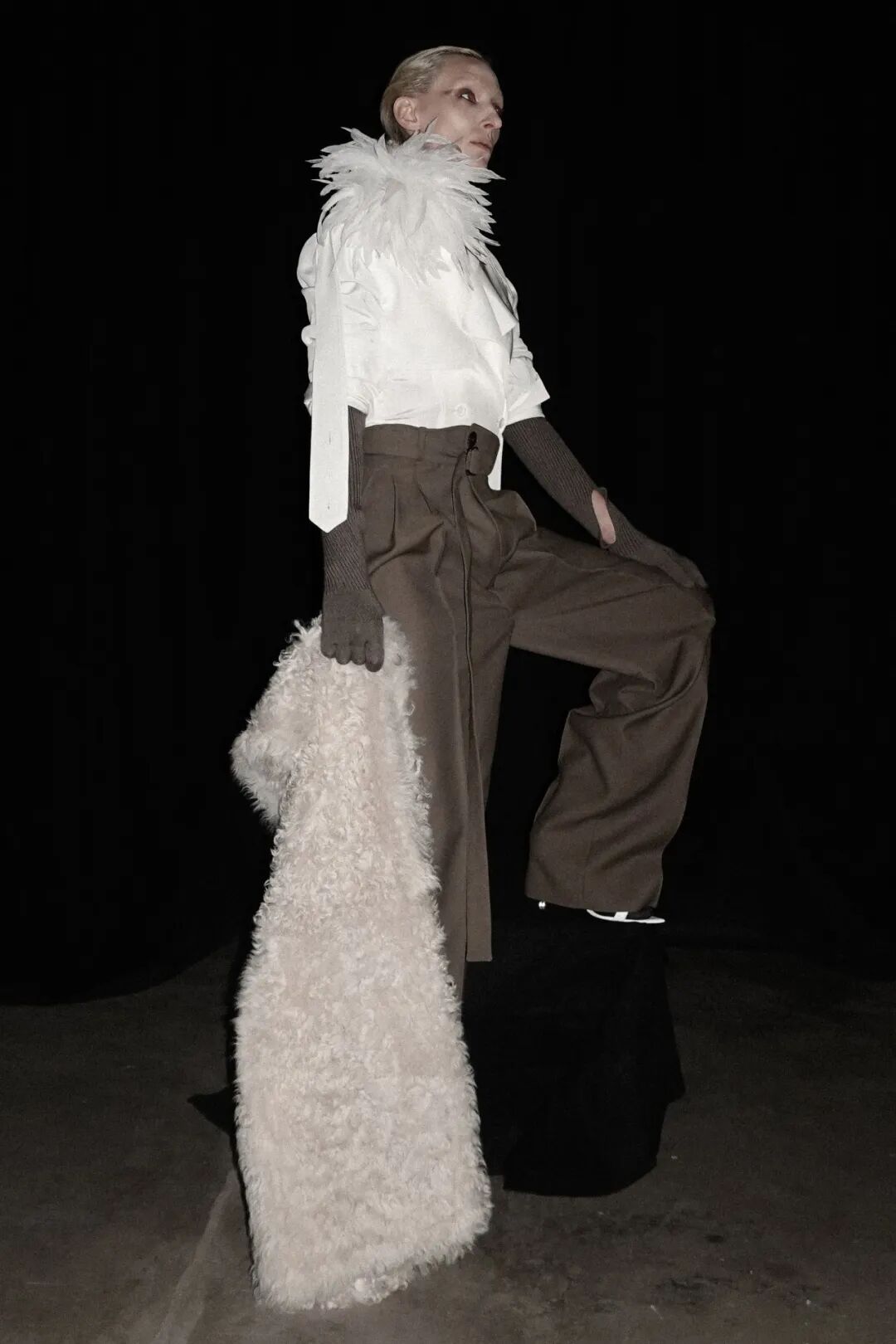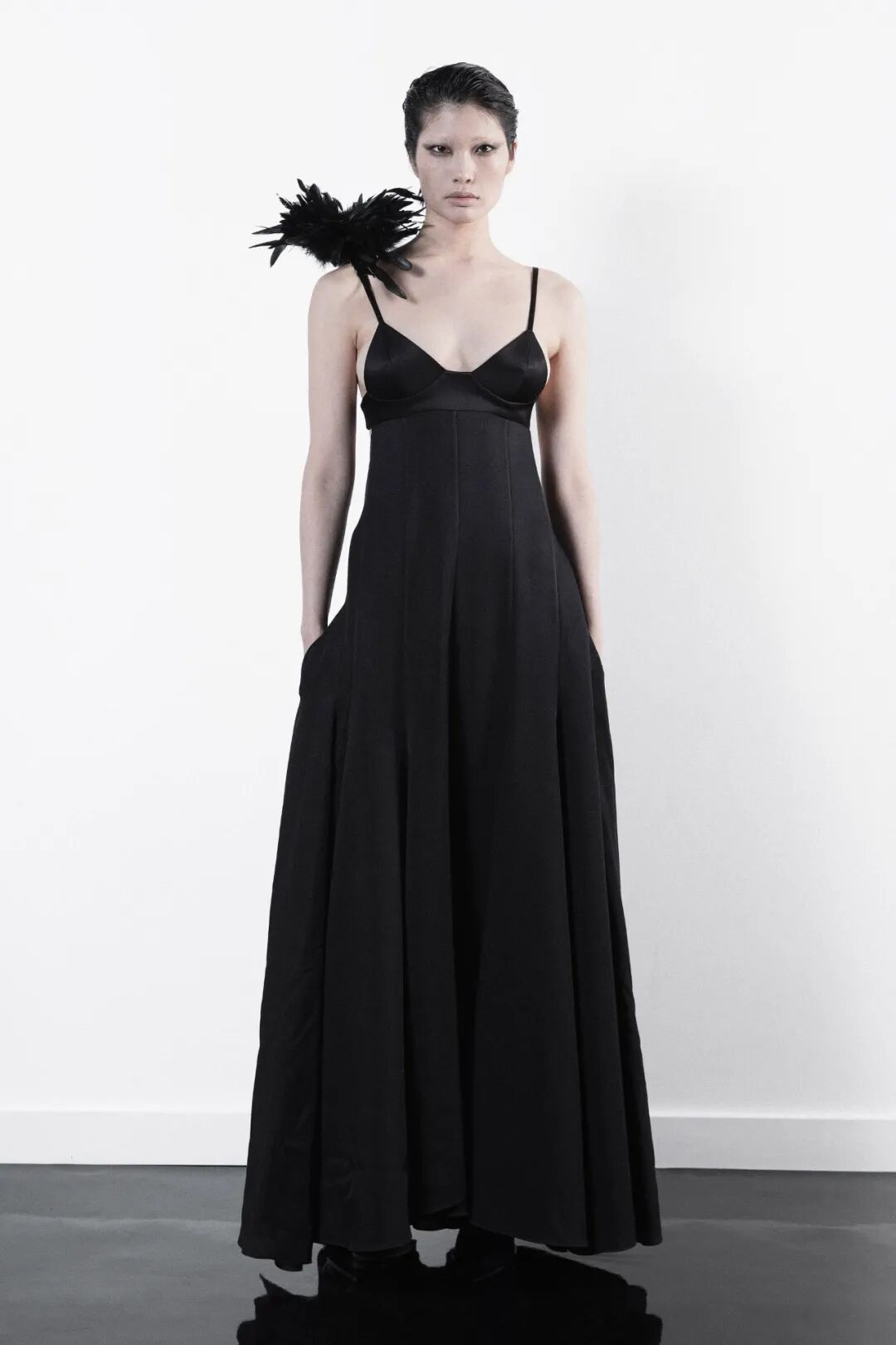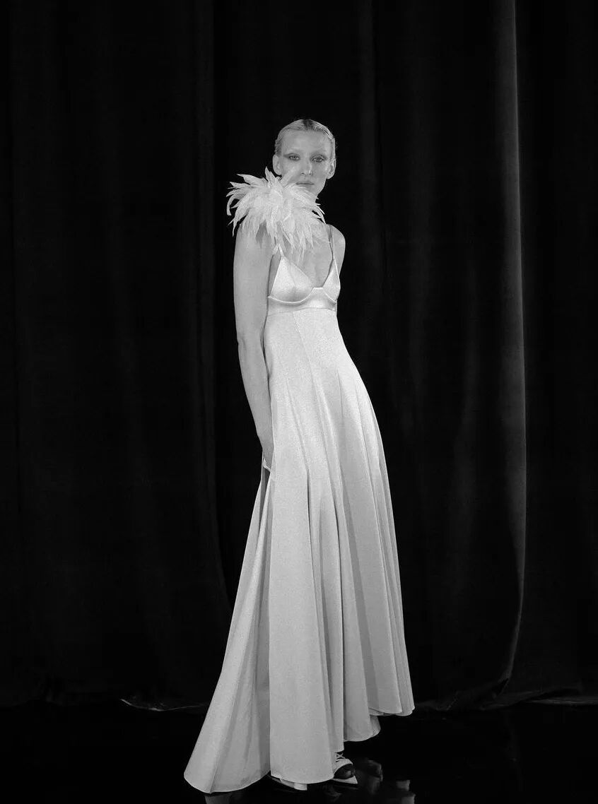 作为一名千禧一代的极简主义者,Peter 正在拓展自己的领域,火速地丰富自己的服装语言。在21秋冬系列中,他将注意力转到了天黑后穿的衣服,通过蕾丝、羽毛胸针与性感的高跟鞋来表达被疫情束缚住的对自由与派对的渴望。本季 Campaign 选择让每一位团队成员作为模特,由 Peter 本人和设计师 An 自己拍摄。