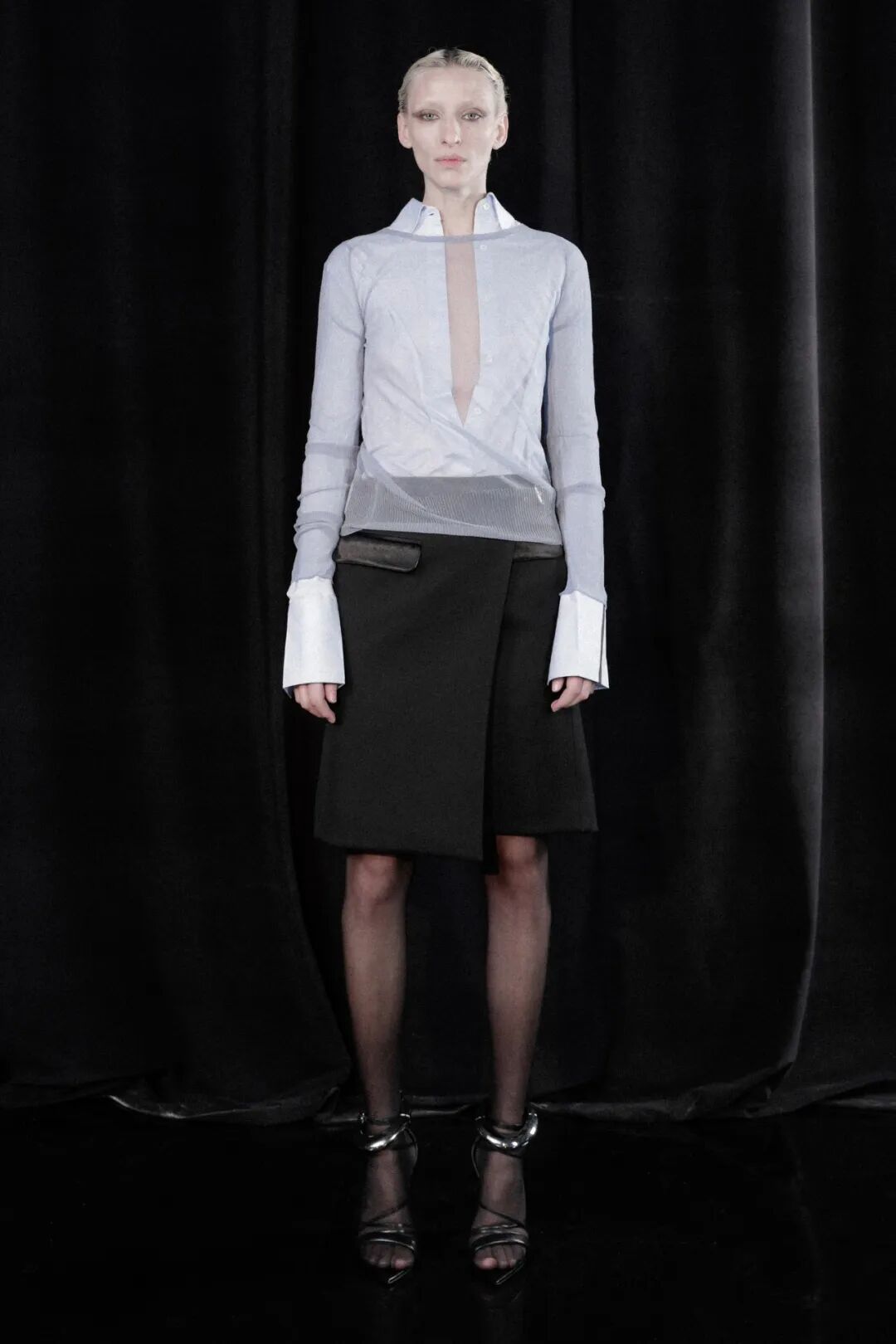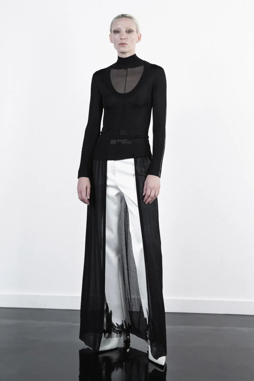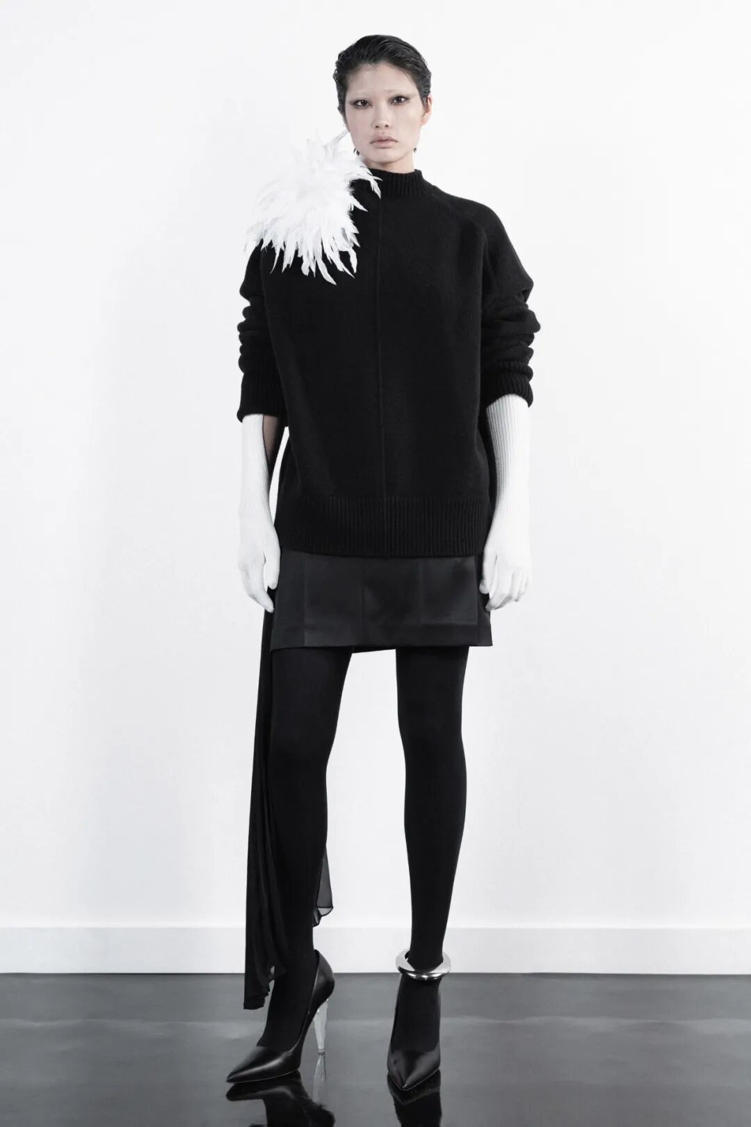 作为一名千禧一代的极简主义者,Peter 正在拓展自己的领域,火速地丰富自己的服装语言。在21秋冬系列中,他将注意力转到了天黑后穿的衣服,通过蕾丝、羽毛胸针与性感的高跟鞋来表达被疫情束缚住的对自由与派对的渴望。本季 Campaign 选择让每一位团队成员作为模特,由 Peter 本人和设计师 An 自己拍摄。