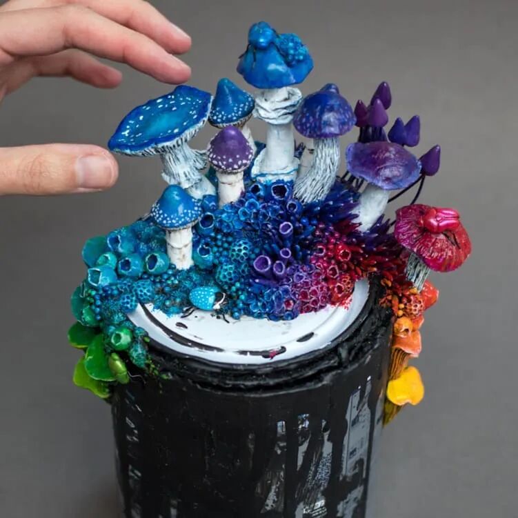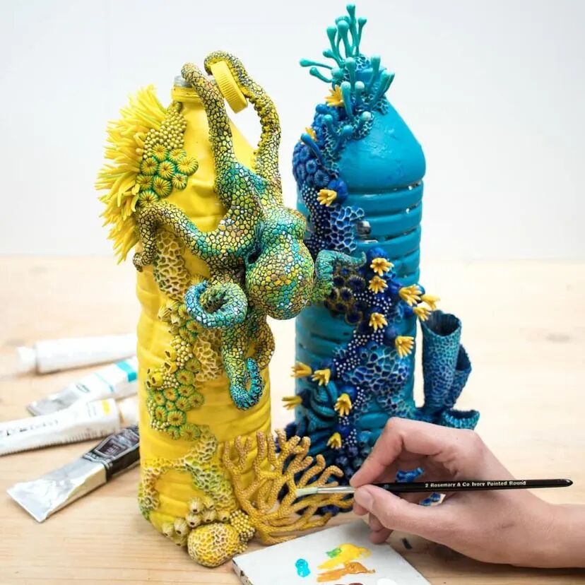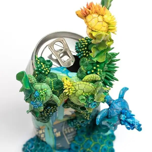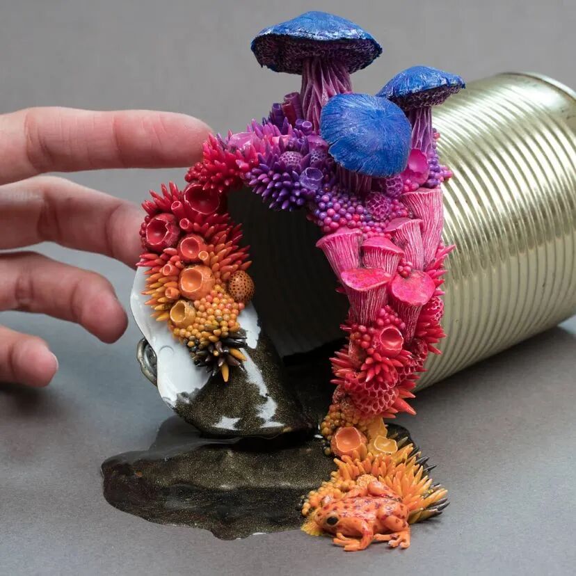 Stéphanie Kilgast受自然形态的启发,收集了锡罐、果酱罐和书本等废弃物品,并用充满活力的珊瑚状生长物组合来装饰。她通过为“垃圾”赋予新生命的方式,想要唤起人们对环境问题的反思。