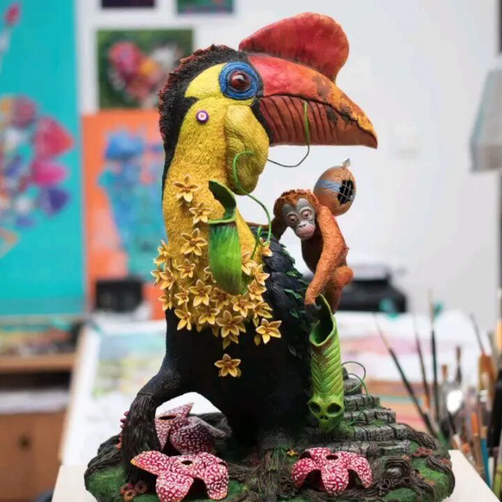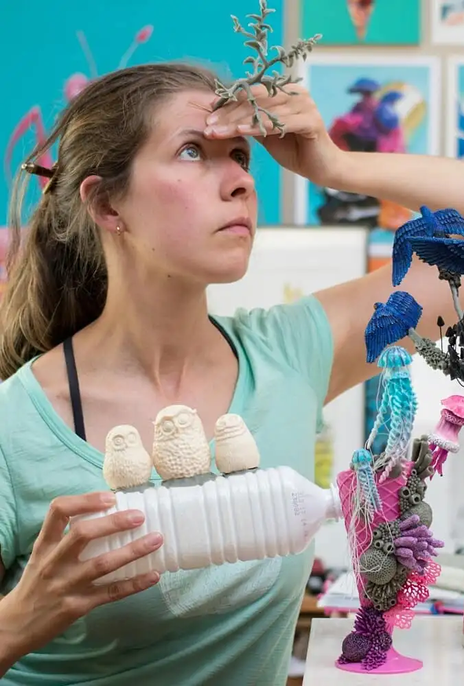 她说:“我研究人类对环境的影响,气候变化,能源危机,过度消费和普遍污染。这是一个非常沉重和令人沮丧的主题,所以我用了很多颜色来平衡它,同时也给这些不确定的时代带来一些希望和快乐。”