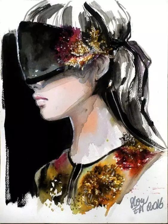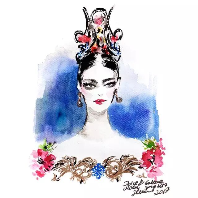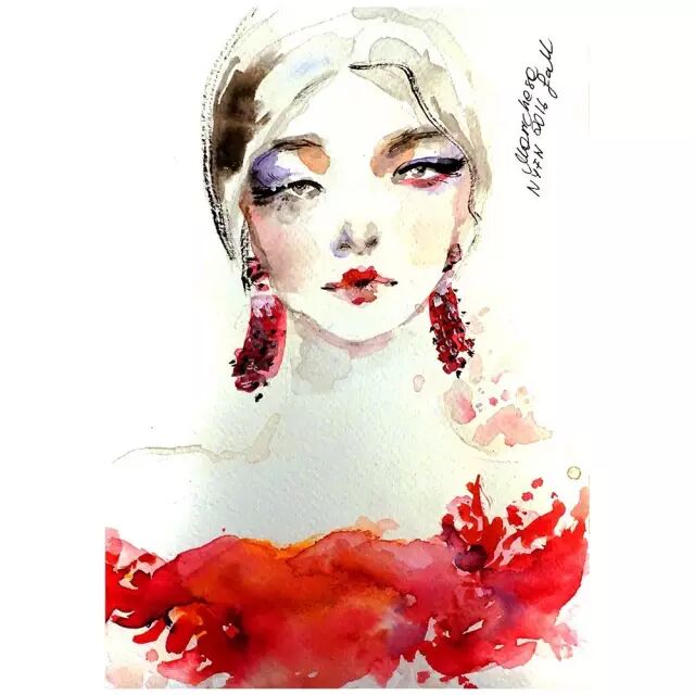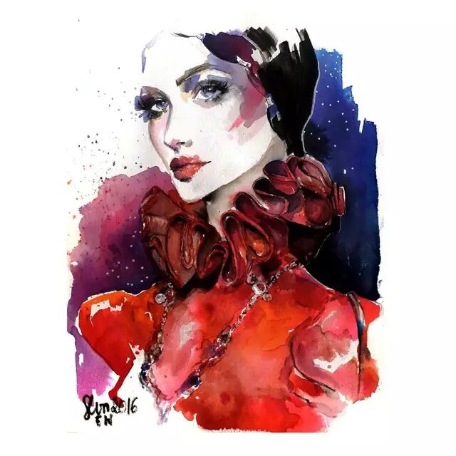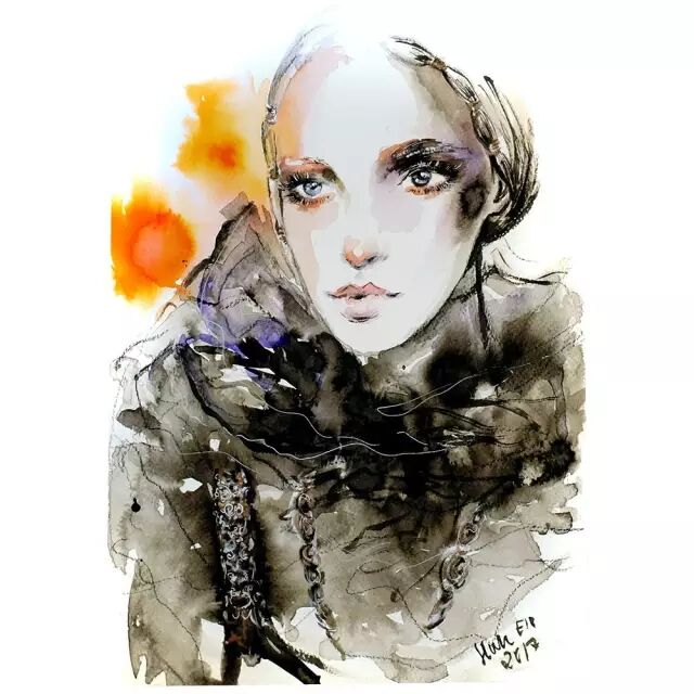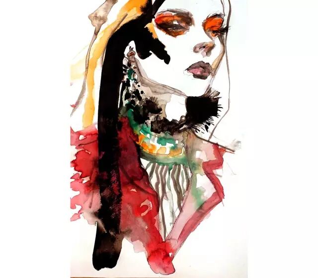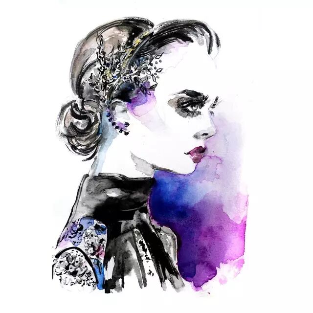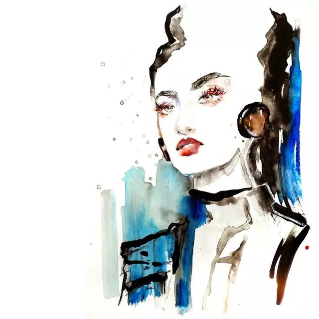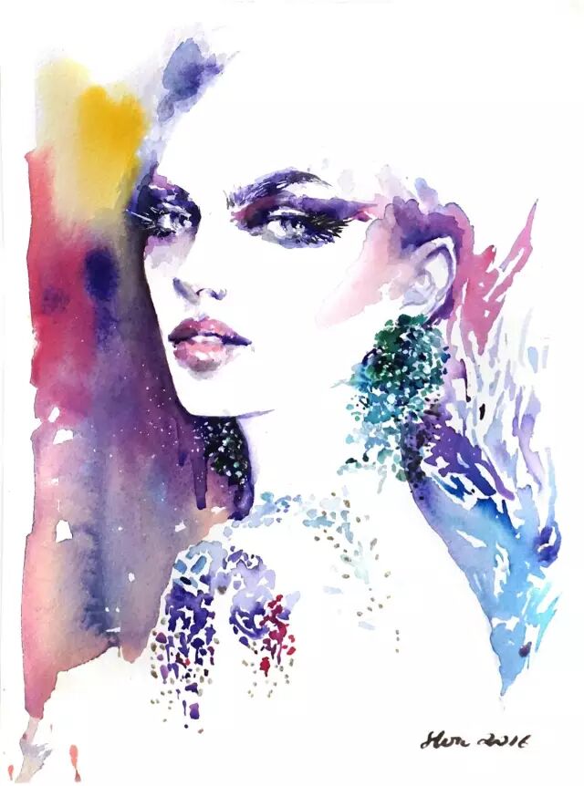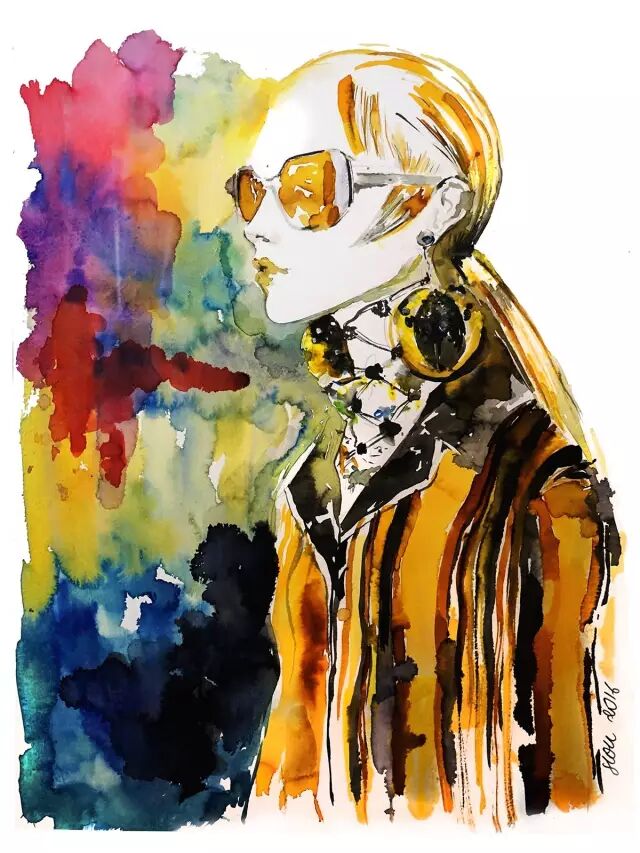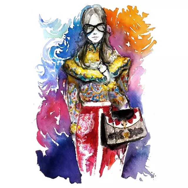 至于灵感,多数来自各大时装秀场,当她捕捉到某一场景中的情感可以带给她创作的欲望时,她就会抓住这一种情感放大再放大,用手中的水彩淋漓尽致的表现出来。
