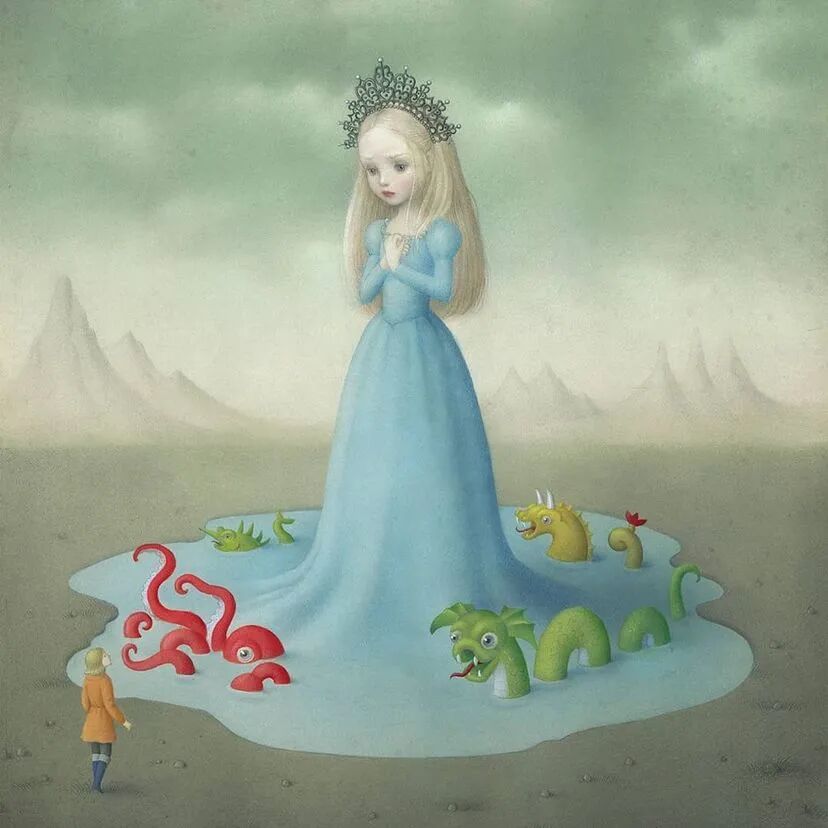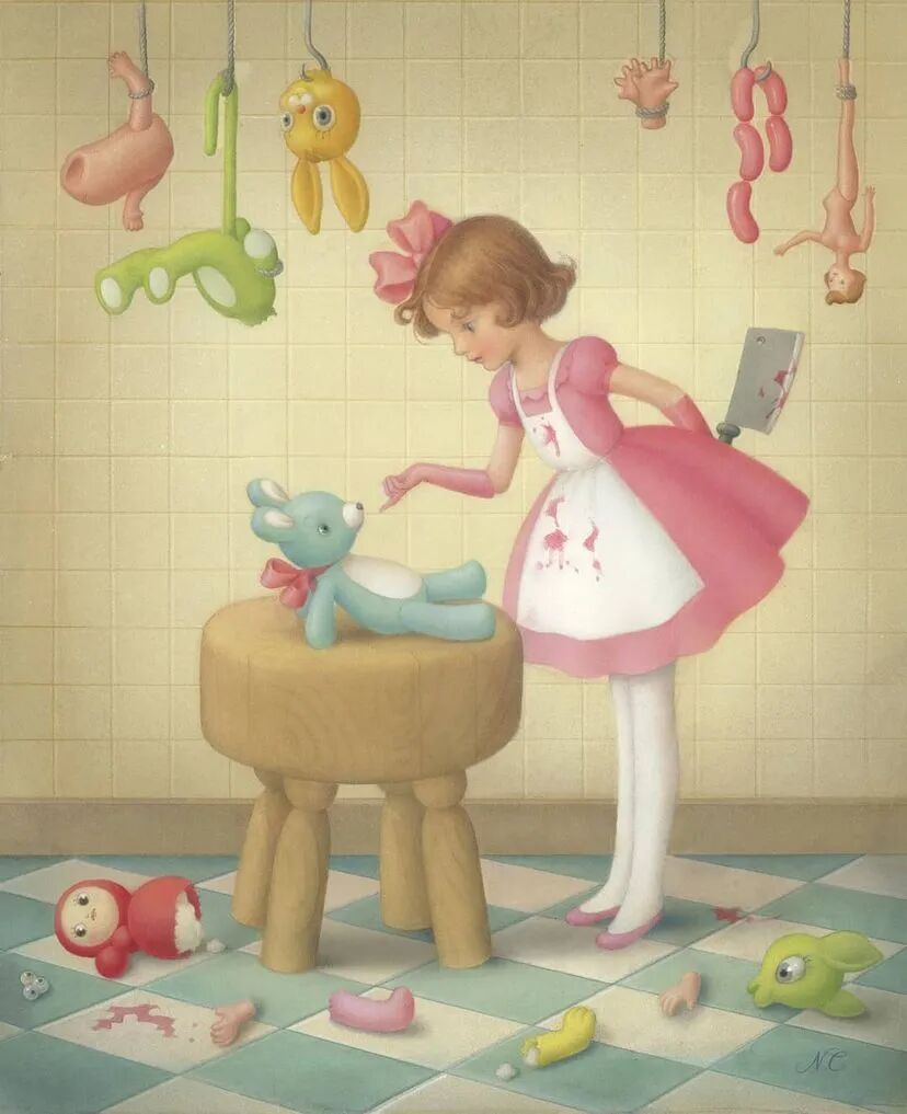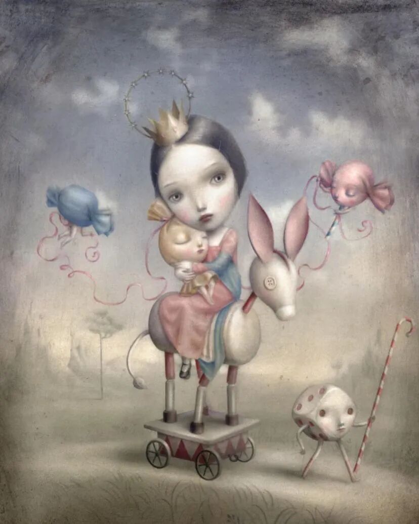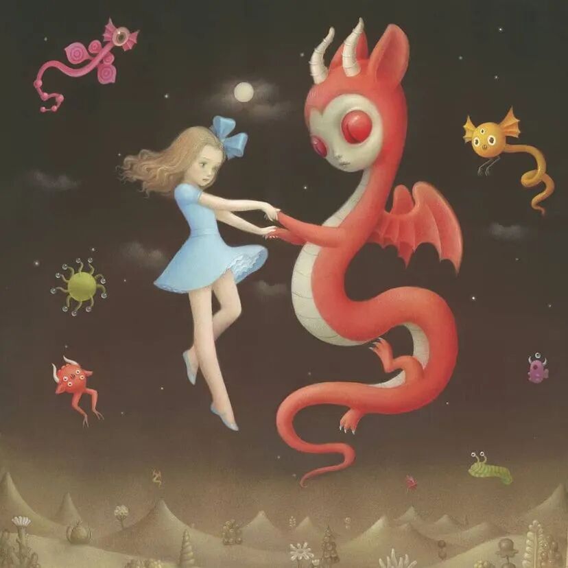 Nicoletta Ceccoli描绘了一个彻底而挑衅的美丽梦魇,其中责任消亡,期望仍未实现。作品中的娃娃代表着美丽、纯真和完美,与情绪的动荡、黑暗和无助并存。