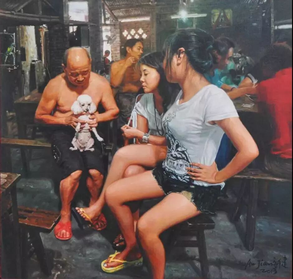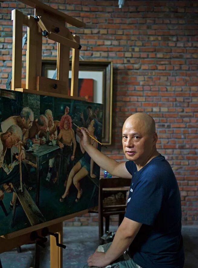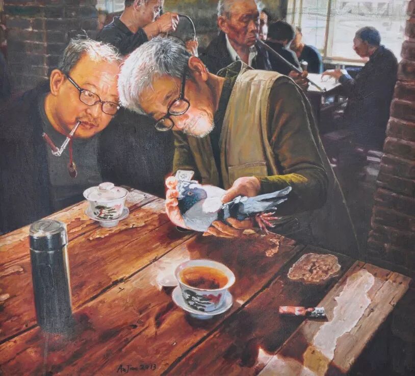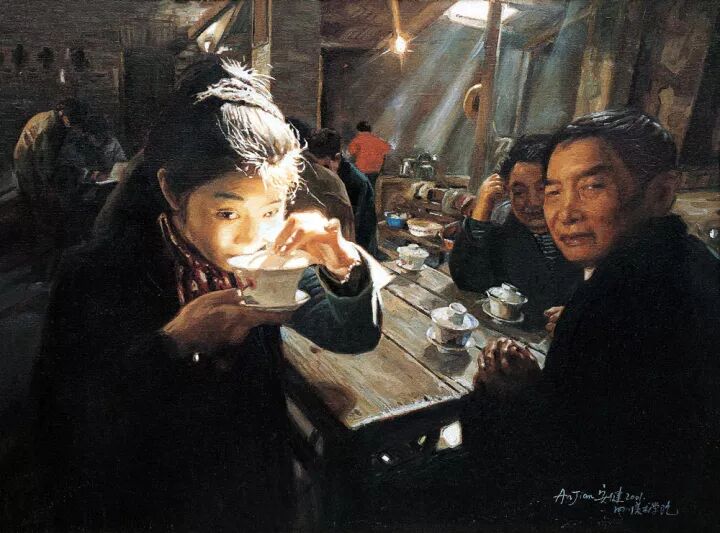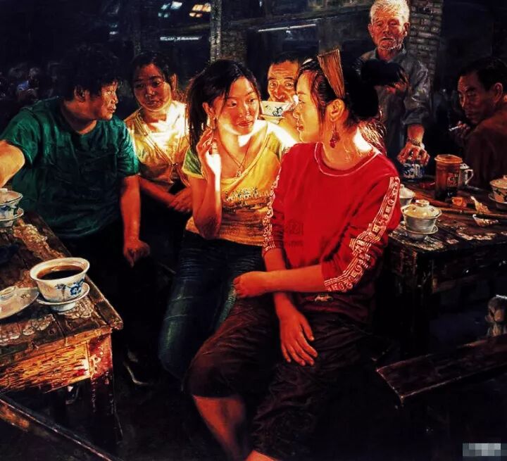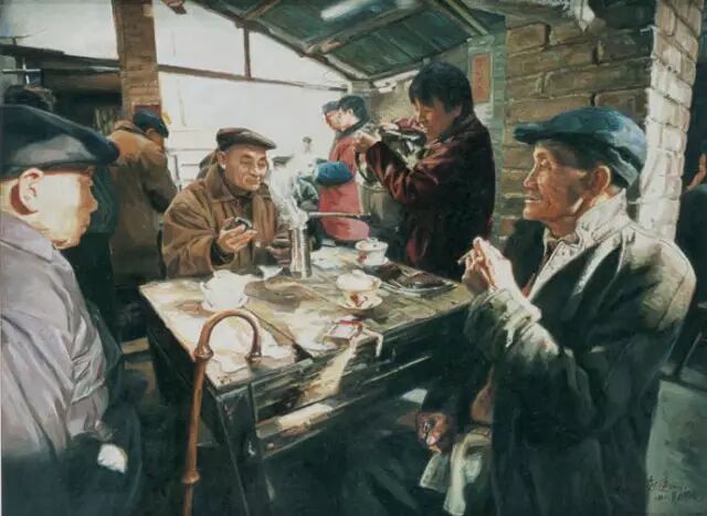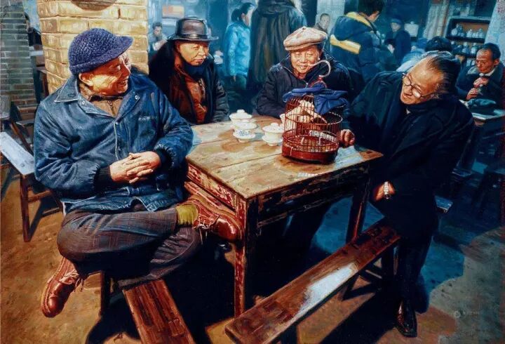 其著名的系列油画作品《茶馆》闻名于国内外