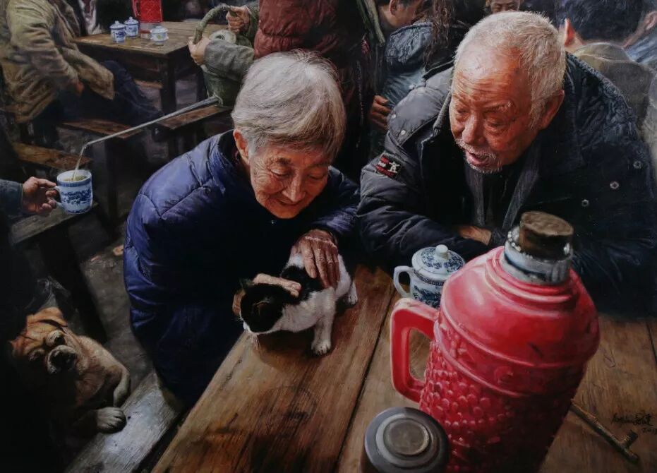 《茶馆》系列是一组超级写实主义力作
