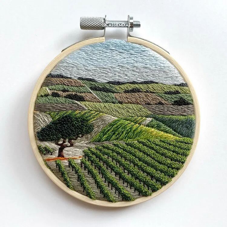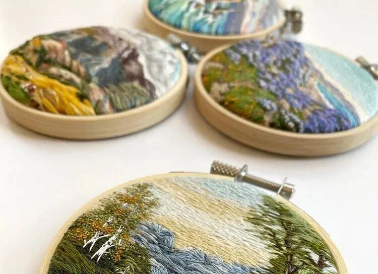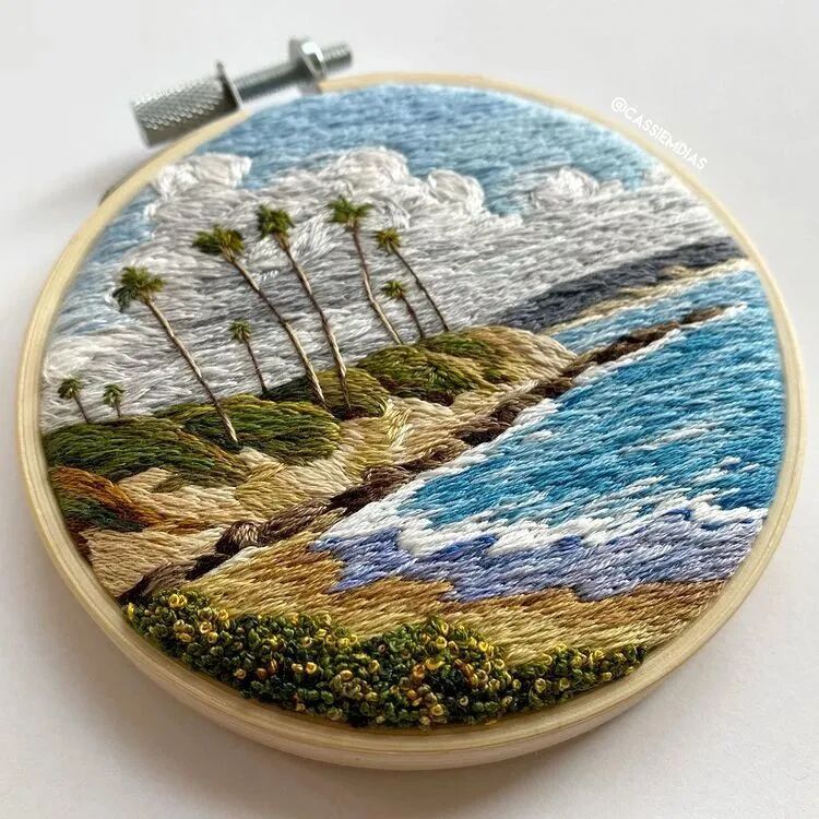 我们在此前一起欣赏过用刺绣绘制速写的作品,也一起看到过使用刺绣创造出立体作品的艺术家,今天,让我们再来认识一位刺绣艺术家,这位刺绣艺术家的名字叫做卡桑德拉·迪亚斯,是一位来自加利福尼亚的艺术家,她对于大自然各种景色都充满了热爱,因为最近2、3年无法出门远游,她就将对大自然的热爱投入到刺绣创作上,用刺绣作品去呈现一个个美丽的风景。