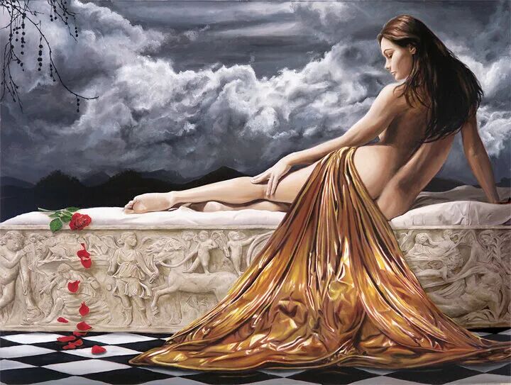 美国艺术家 克里斯·德洛科 (Chris.Dellorco)以写实的笔触,绚丽的色彩,大胆的描绘出性感丰满的西洋女郎。他的人体油画或许不像很多超写实油画大师那样逼真细腻,但是他油画中的美女们却各具风采,妖娆妩媚,同样美不胜收!