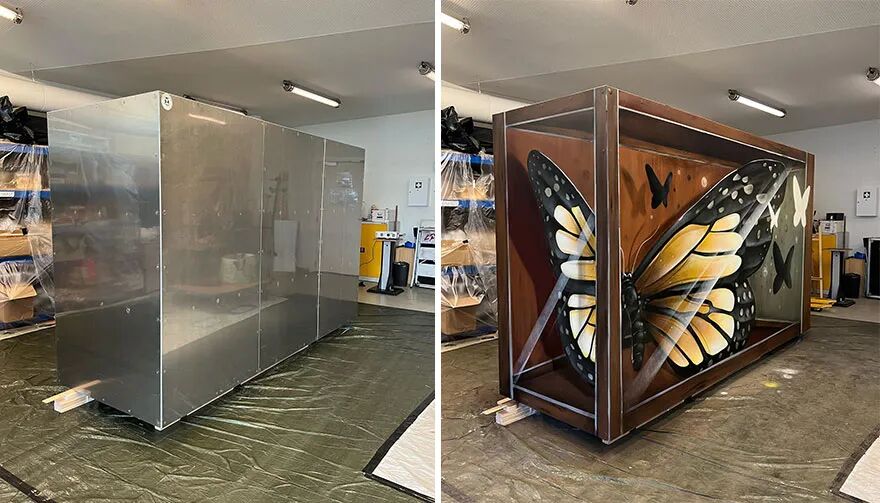 这些精彩的3D涂鸦作品,主要绘制在废弃工厂里,在创作之前,皮埃尔会对墙壁进行观察,并找出适合墙壁的绘画作品再去进行绘画,一般来说一幅涂鸦作品需要3天左右绘画完成,复杂和大型的作品,需要的时间会更多一些。