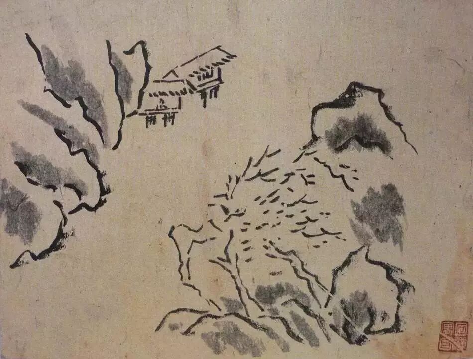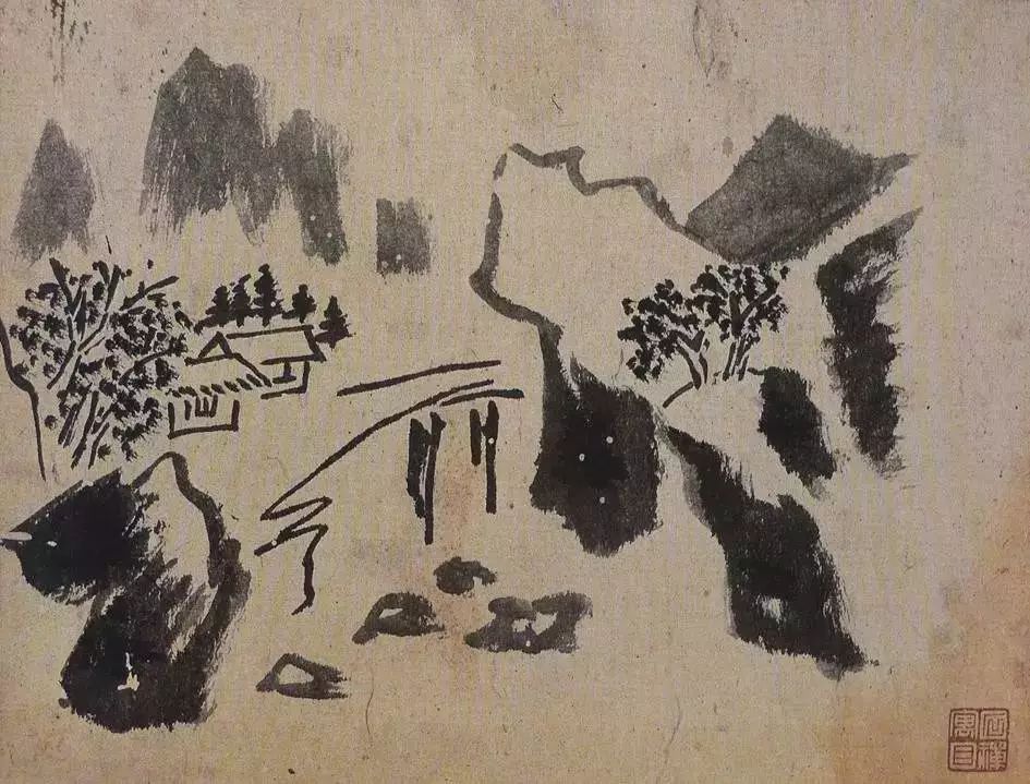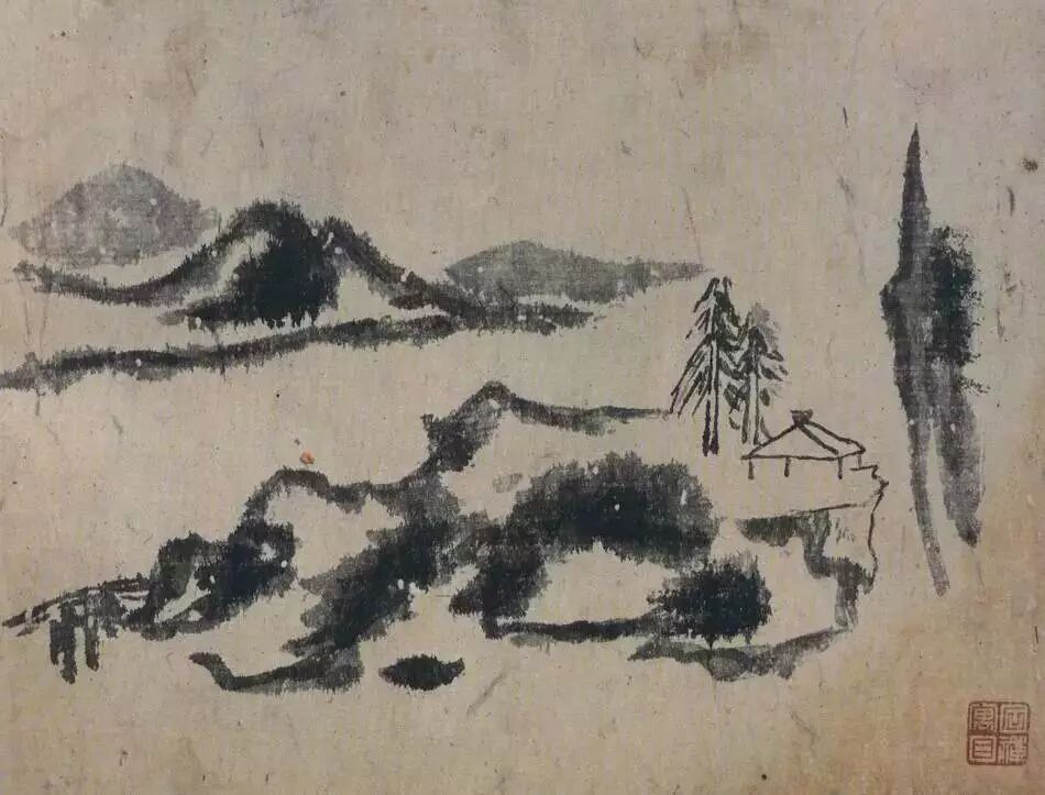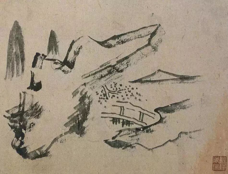 [清]担当 山水册页二十二开之二十一 17.5cm×22.8cm 纸本墨笔 云南省博物馆藏