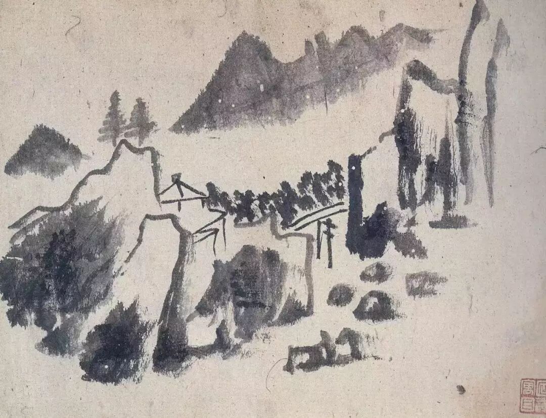 [清]担当 山水册页二十二开之三 17.5cm×22.8cm 纸本墨笔 云南省博物馆藏