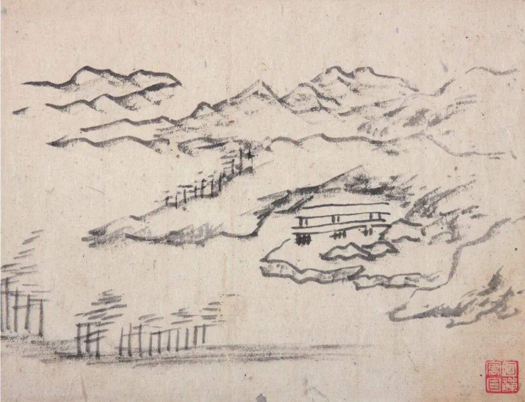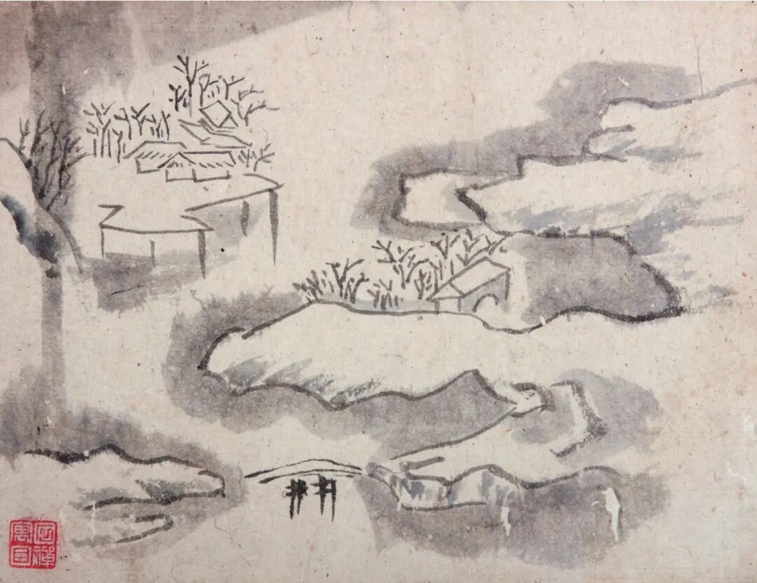[清]担当 山水册页二十二开之一 17.5cm×22.8cm 纸本墨笔 云南省博物馆藏