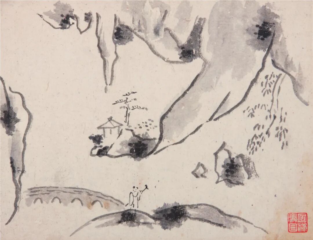 [清]担当 山水册页二十二开之二十 17.5cm×22.8cm 纸本墨笔 云南省博物馆藏