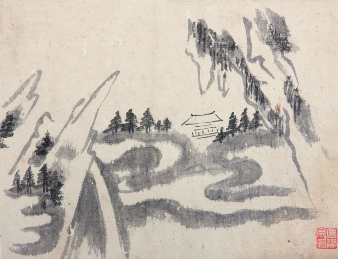 [清]担当 山水册页二十二开之六 17.5cm×22.8cm 纸本墨笔 云南省博物馆藏