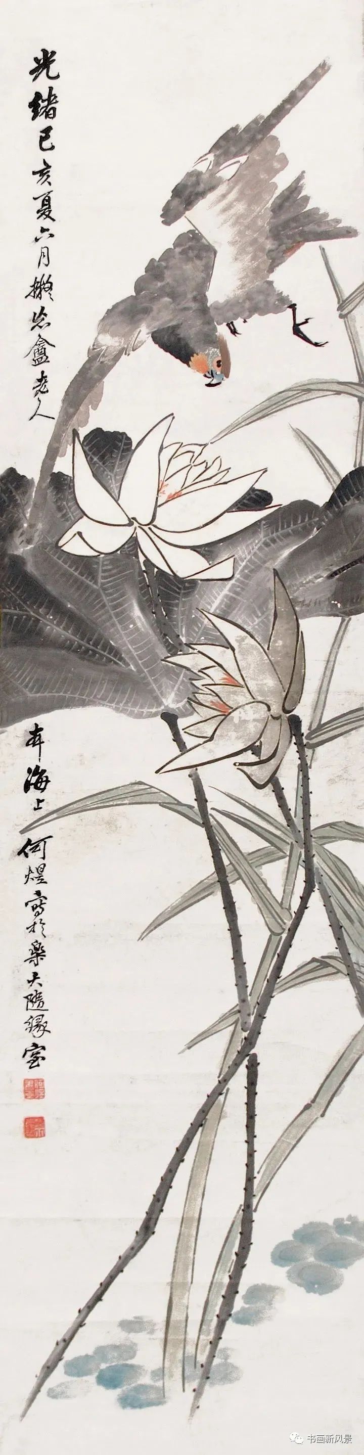 何煜(1852-1928),近现代海上画派著名画家。擅画没骨花鸟、草虫。其作品以精妙绝伦的笔墨、清润典雅的设色、热烈生动的意境,一度名噪上海,并成为近现代海上画坛的重要代表人物。