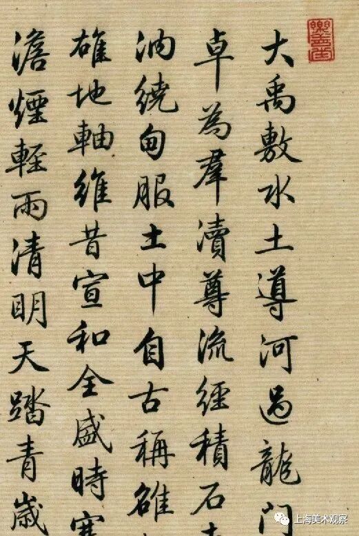 此作全篇都是用小字行书写成,书风温润秀雅,在平和淡雅之中演变出了书法之美,已然是达到了“不激不厉而风规自远”的超然境界。