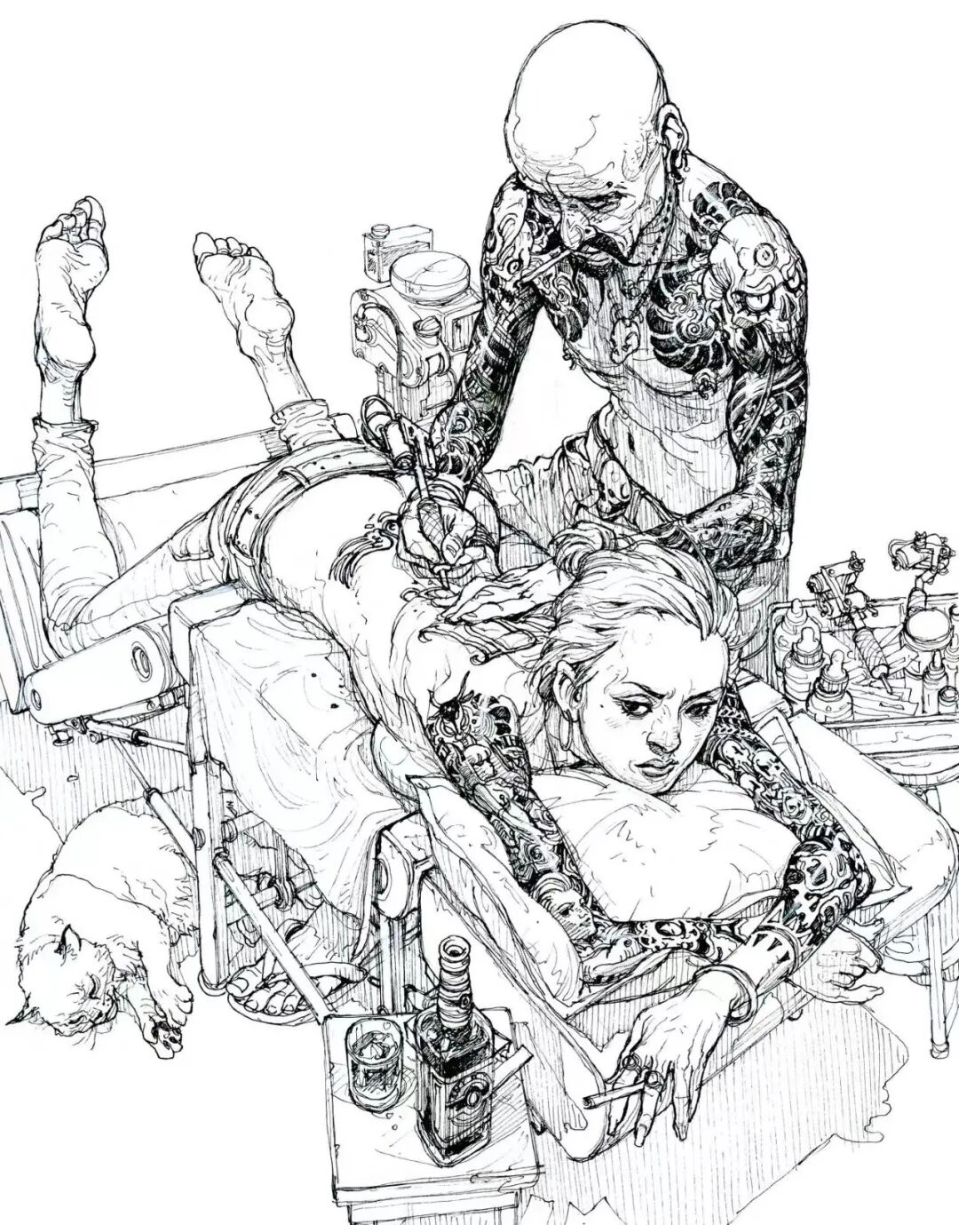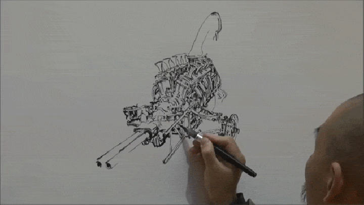 他很擅长表现丰富的人体,机械、各种枪支炮弹