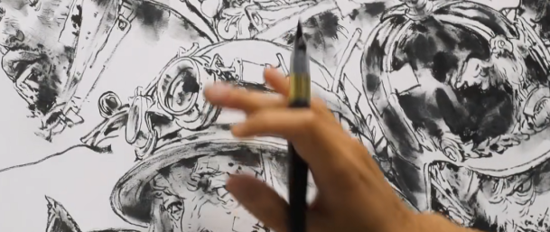 刚开始金政基画素描时会非常仔细地在纸上画很多线