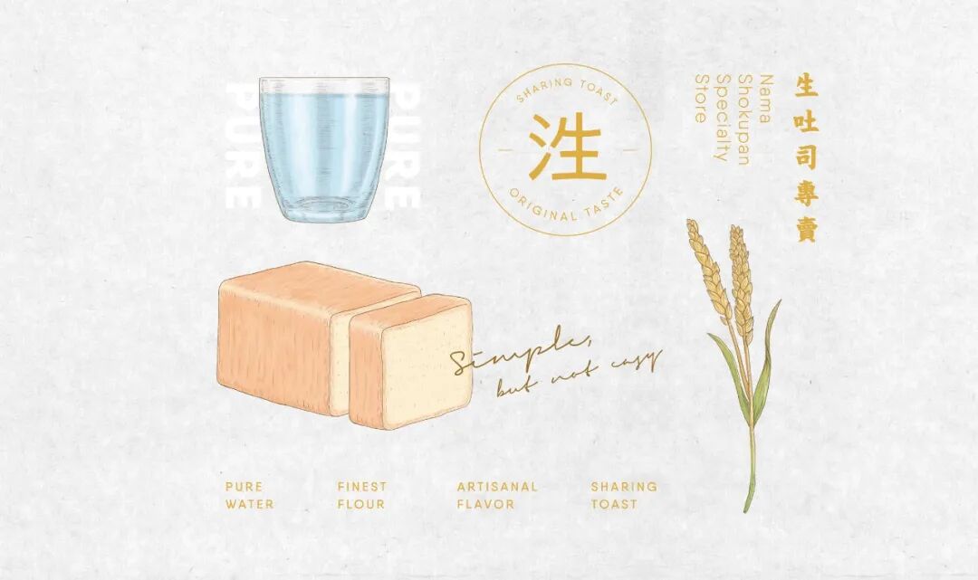 "泩生吐司"整体感觉给人温润滑顺口感,搭配各种插画,牛皮纸质感的包装,把这种源自于日本的特殊风味,转化成了本土民众可接受味觉质地。