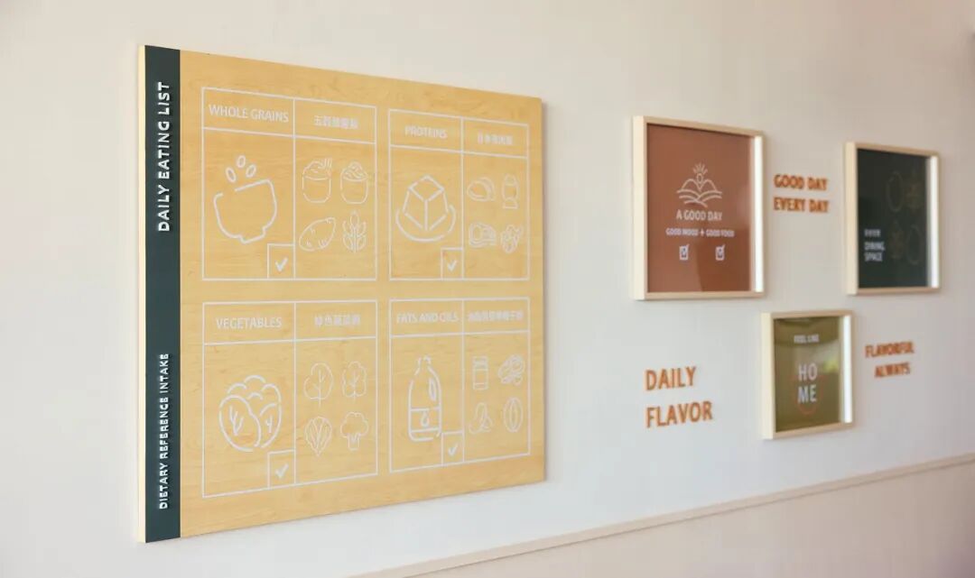 平实不奢华但充满“家"的风味品牌创意,店铺区别于一般传统快餐厅的油乱脏,线稿式的图形LOGO,图标化的小元素,给人不一样的温暖的用餐氛围,希望可以抚慰人心。