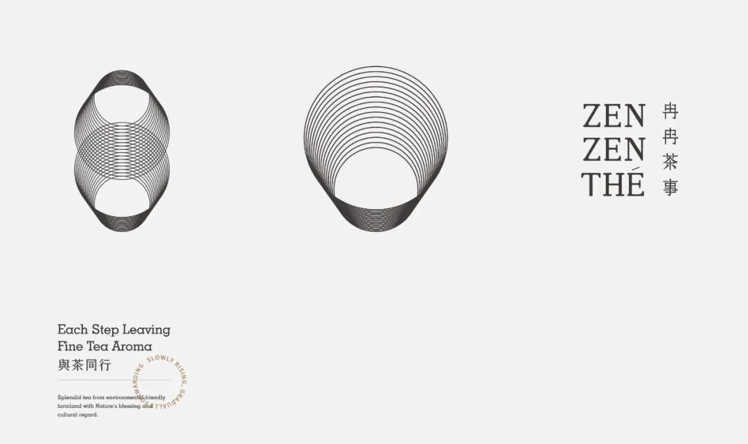 “冉冉而升,缓缓而行”,静下心放慢脚步也才能体会到茶饮丰富且细緻的风味。品牌识别很简洁,茶杯俯视原型延伸出环绕的曲线,一层一层的风味堆叠,如同山峰高低起伏的啜饮滋味。