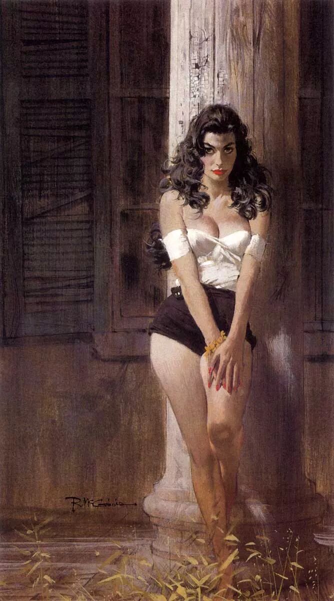 罗伯特·E·麦金尼斯(Robert E Mcginis)。 麦金尼斯擅长描绘女性人物,写实主义为其主要绘画风格,画作中的笔触细腻丰富、精致唯美,具有浪漫主义色彩。 罗伯特E麦金尼斯 是 美国艺术家和插画家。麦金尼斯的作品数量有1200本以上的上市平装书封面设计图;40多名电影海报;几部詹姆斯邦德007海报和马特头盔电影海报。 罗伯特爱德华麦金尼斯出生在美国俄亥俄州辛辛那提市,(另一种说法是在俄亥俄州或怀俄明州)。麦金尼斯在“沃尔特迪斯尼工作室” 做过学徒,在俄亥俄州立大学念书。在战后于1958年开始平装本的职业生涯画。 1985年被“浪漫时代杂志”授予年度“浪漫主义艺术家”的称号,嘉奖他为许多爱情小说平装封面所做的成功努力。自2004年以来,麦金尼斯创作的插图封面多为打击犯罪平装系列书籍的设计。他是美国迄今在世的最著名插画家,