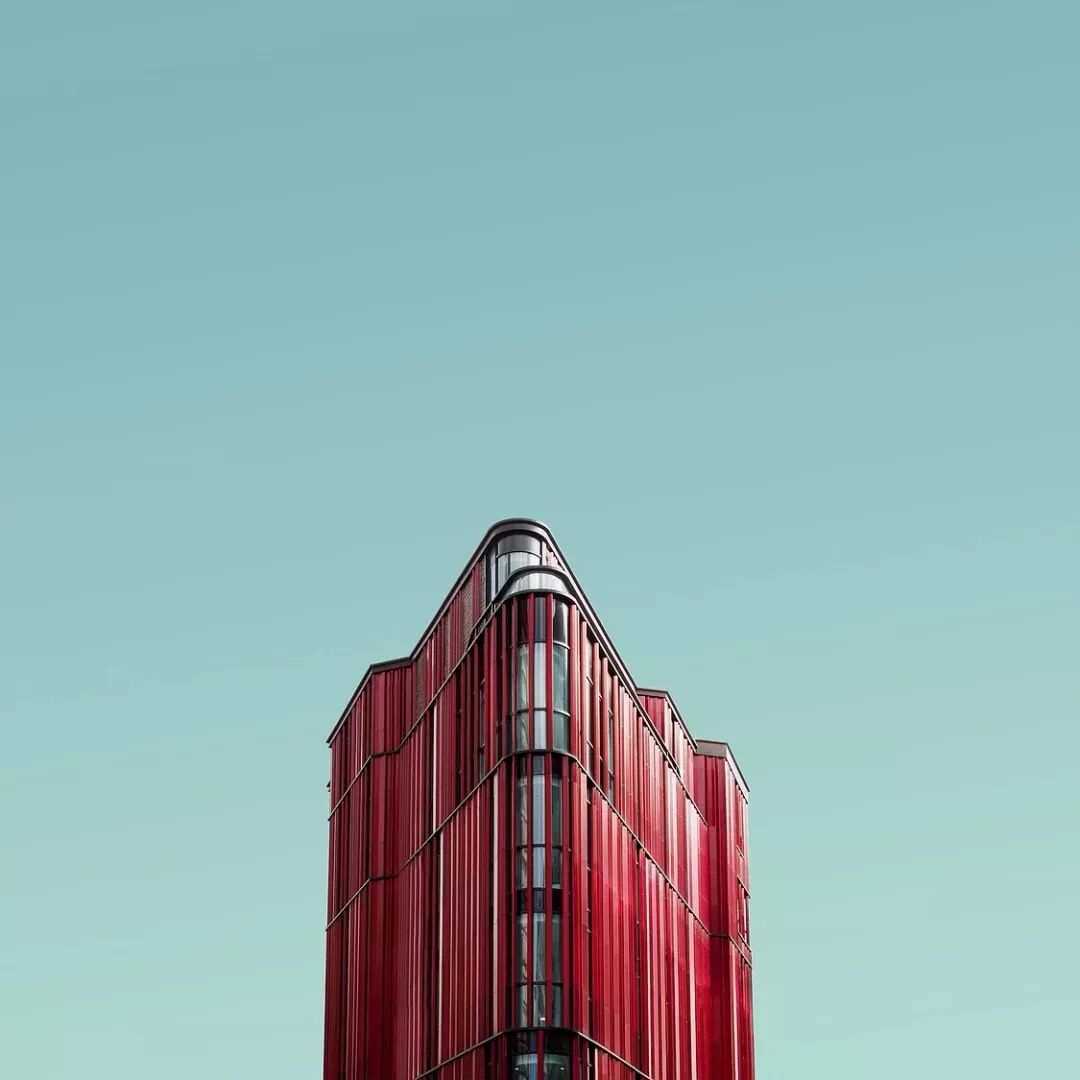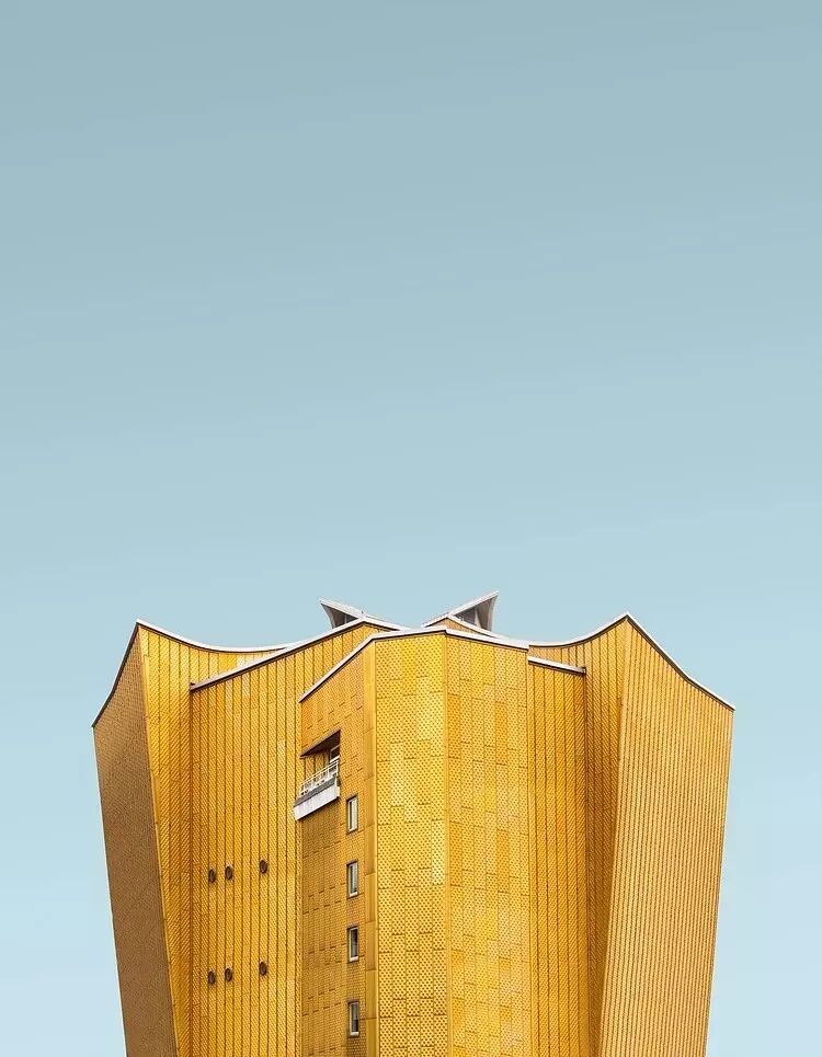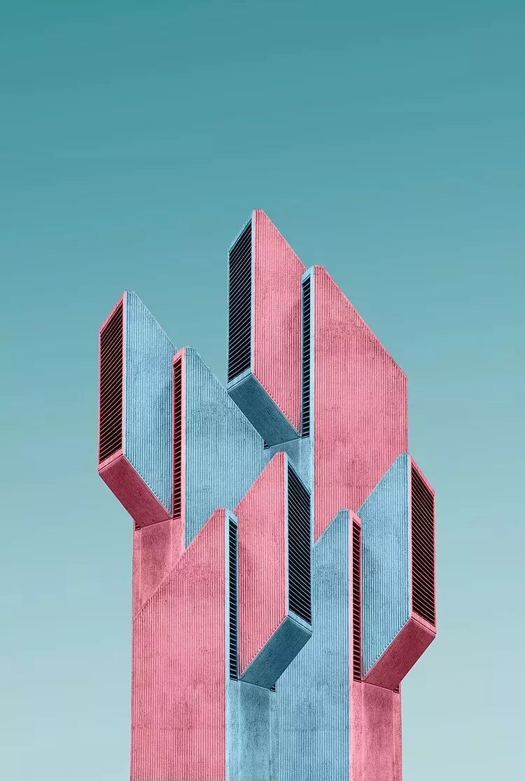 则更多将平面设计的元素运用到他的建筑照片当中。
