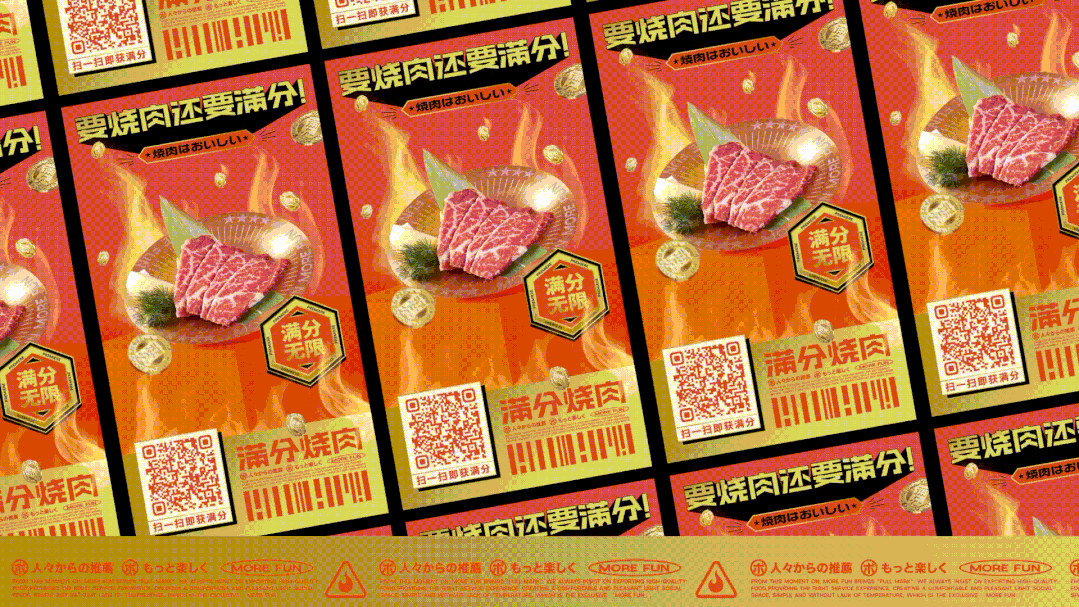 一个称得上“满分”的烧肉店--MORE FUN满分日式烧肉,首先在品名上就以音译的方式,趣味化地表达了品牌特色,迅速吸引消费者注意。整体通过围绕新鲜现切精细分割的日式烧肉处理手法,输出简约有态度的品牌设计,系统梳理独特的就餐体验,打造舒适愉悦的轻社交空间,来满足年轻消费者品质就餐、社交分享的需求;简约不缺温度,是专属的「满分」。