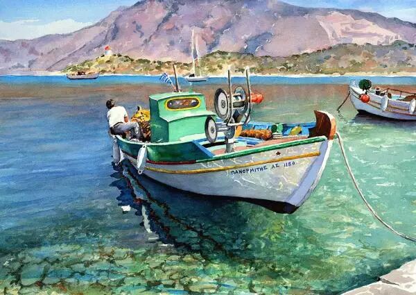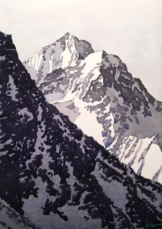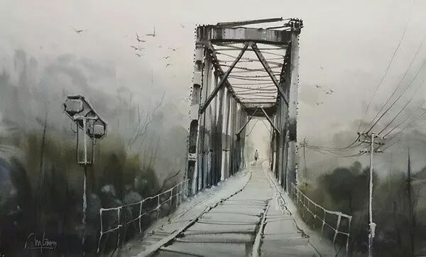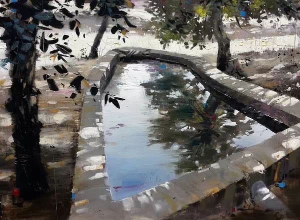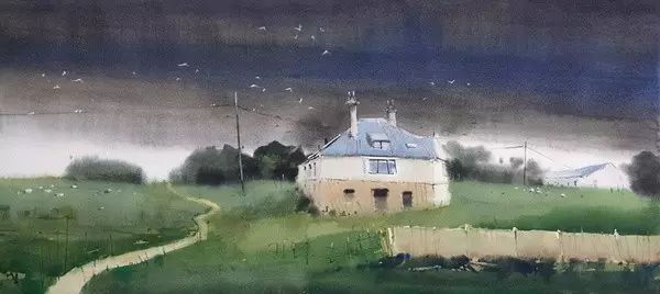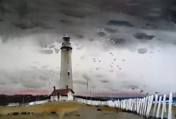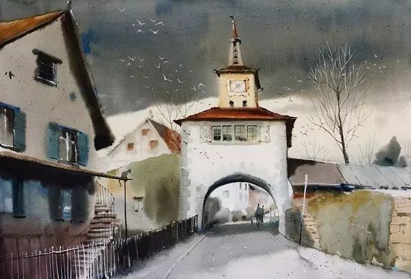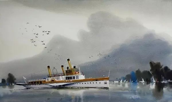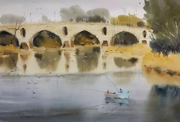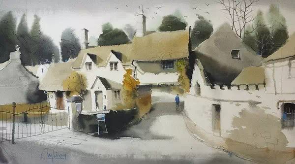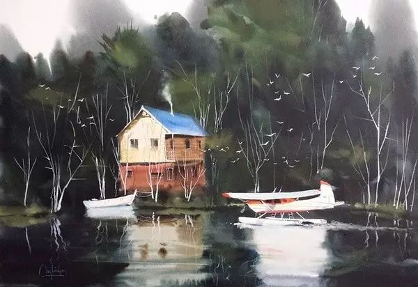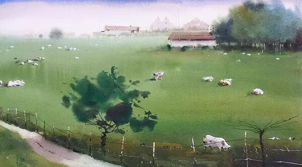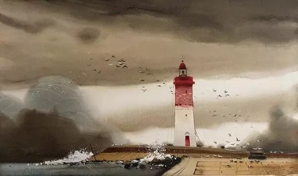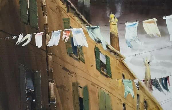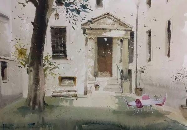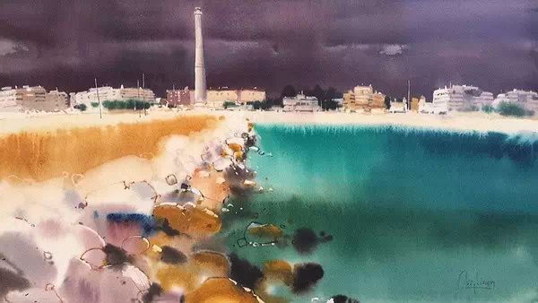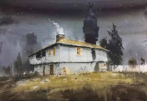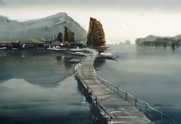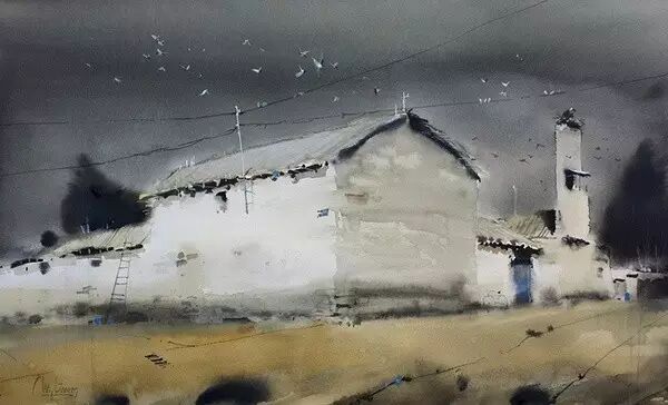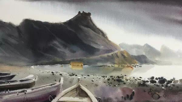 他的创作喜用湿画法,他的水彩画,具有油画的色彩与质感,也有水墨画“淡彩轻岚为一体”的神韵!