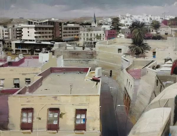 他描绘的物体以建筑和海景为主,对虚实和颜色的把握非常到位。
