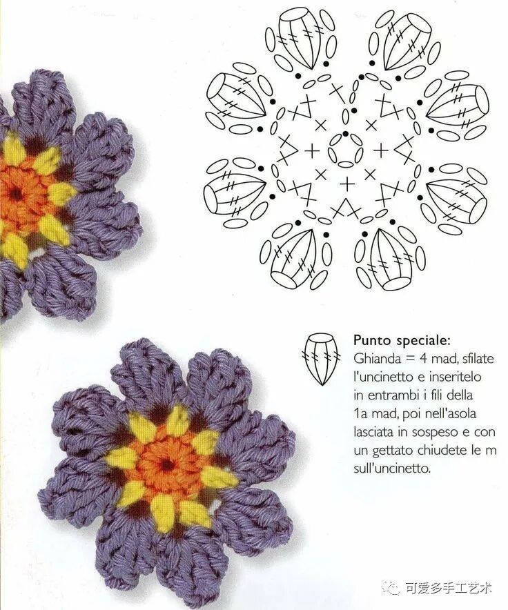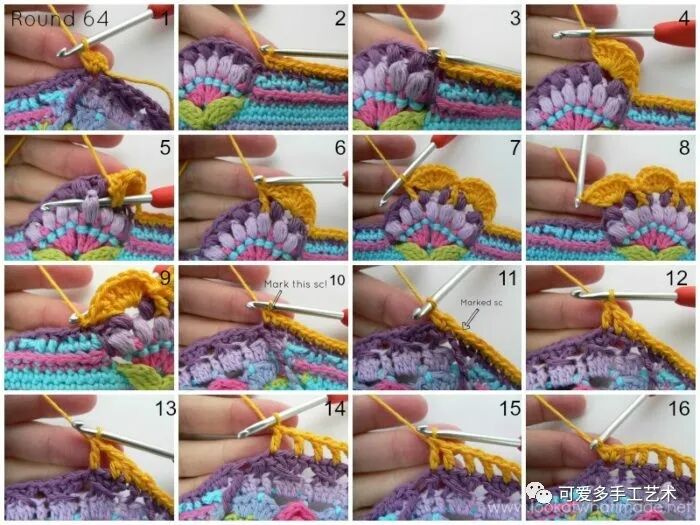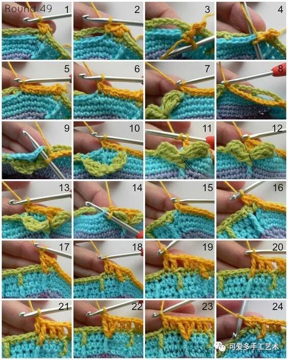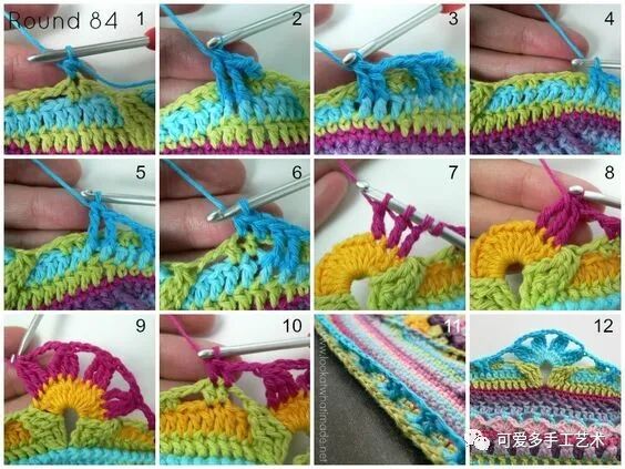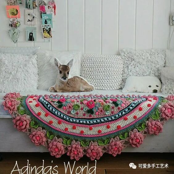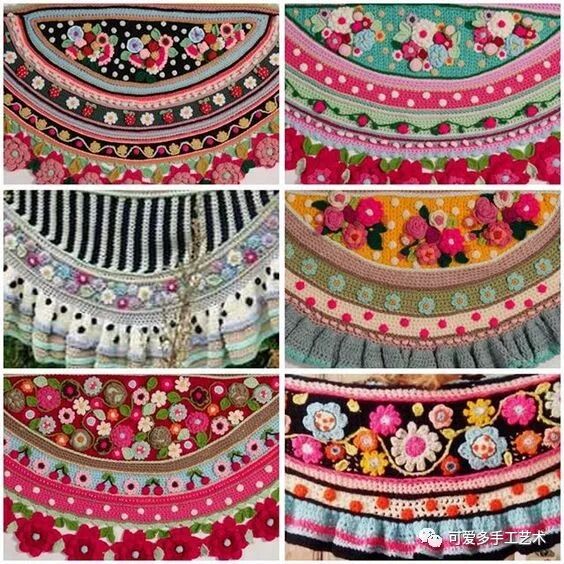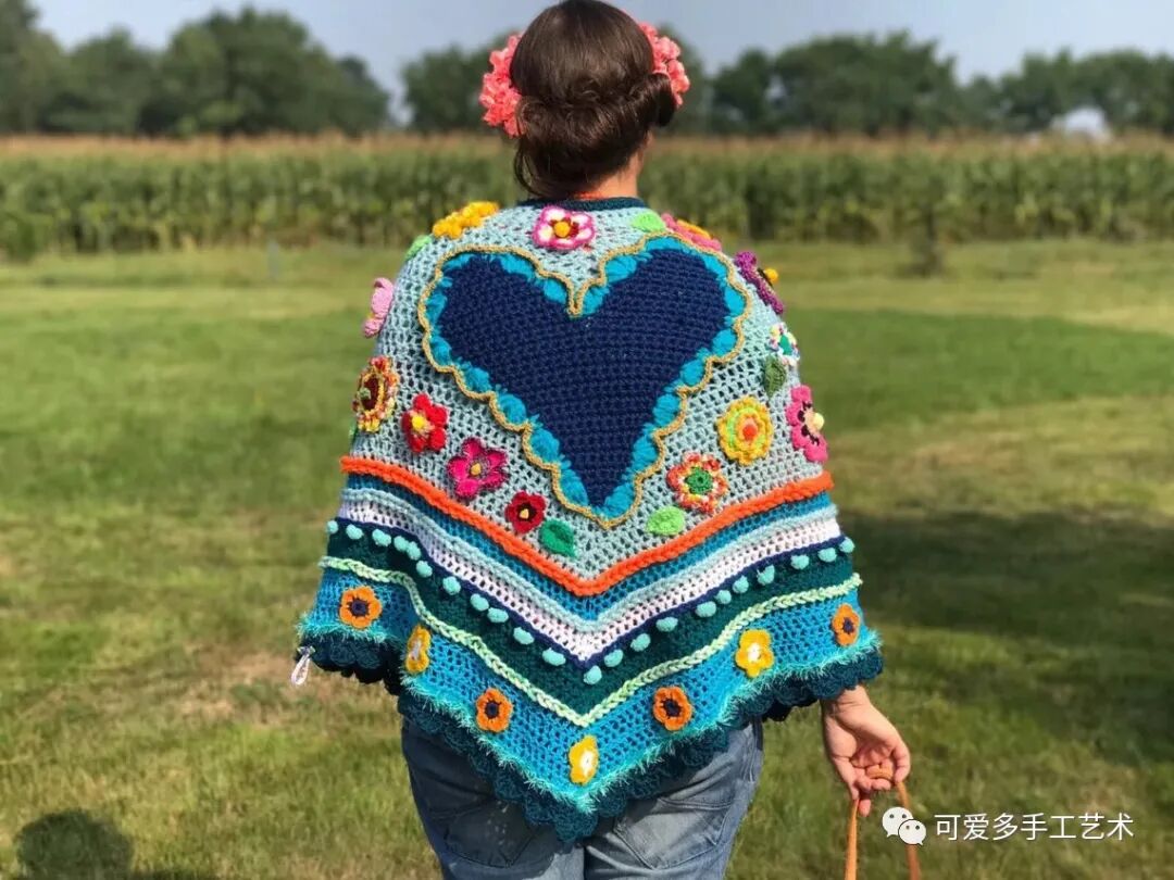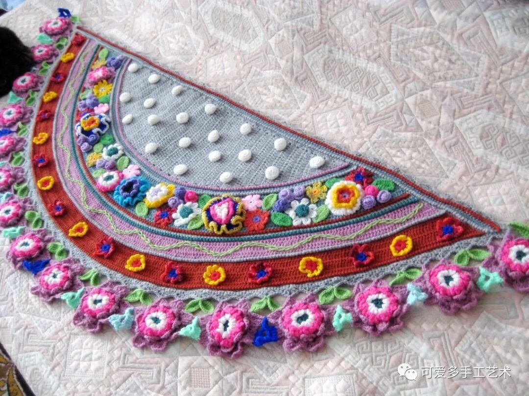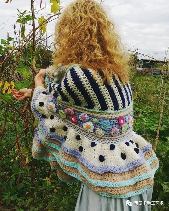 先起针钩出三角围巾的大小,之后按照自己喜欢的图案,换线钩几圈花样形成一条大披肩,最后把钩好的小花都在边缘钩连接进去即可。喜欢叶子可以再钩上一圈做点缀。