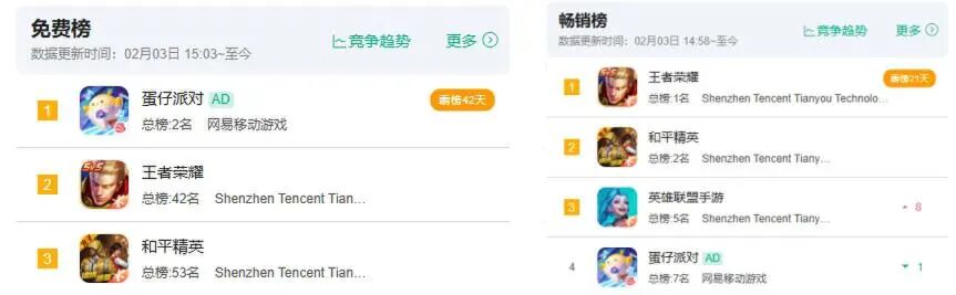 以上这些产品其实或多或少都取得了一定的成绩,但面对《王者荣耀》与《和平精英》盘踞的竞技山头,可谓是久攻不下。《蛋仔派对》也许在立项之初,只是想做好休闲竞技-派对社交这一垂直品类,但如今用户增长势如劈竹,借春节之势冲到了一个非常夸张的数据——我已经很久没看到《王者荣耀》被另一款竞技游戏压在免费榜第二名这么长时间了。