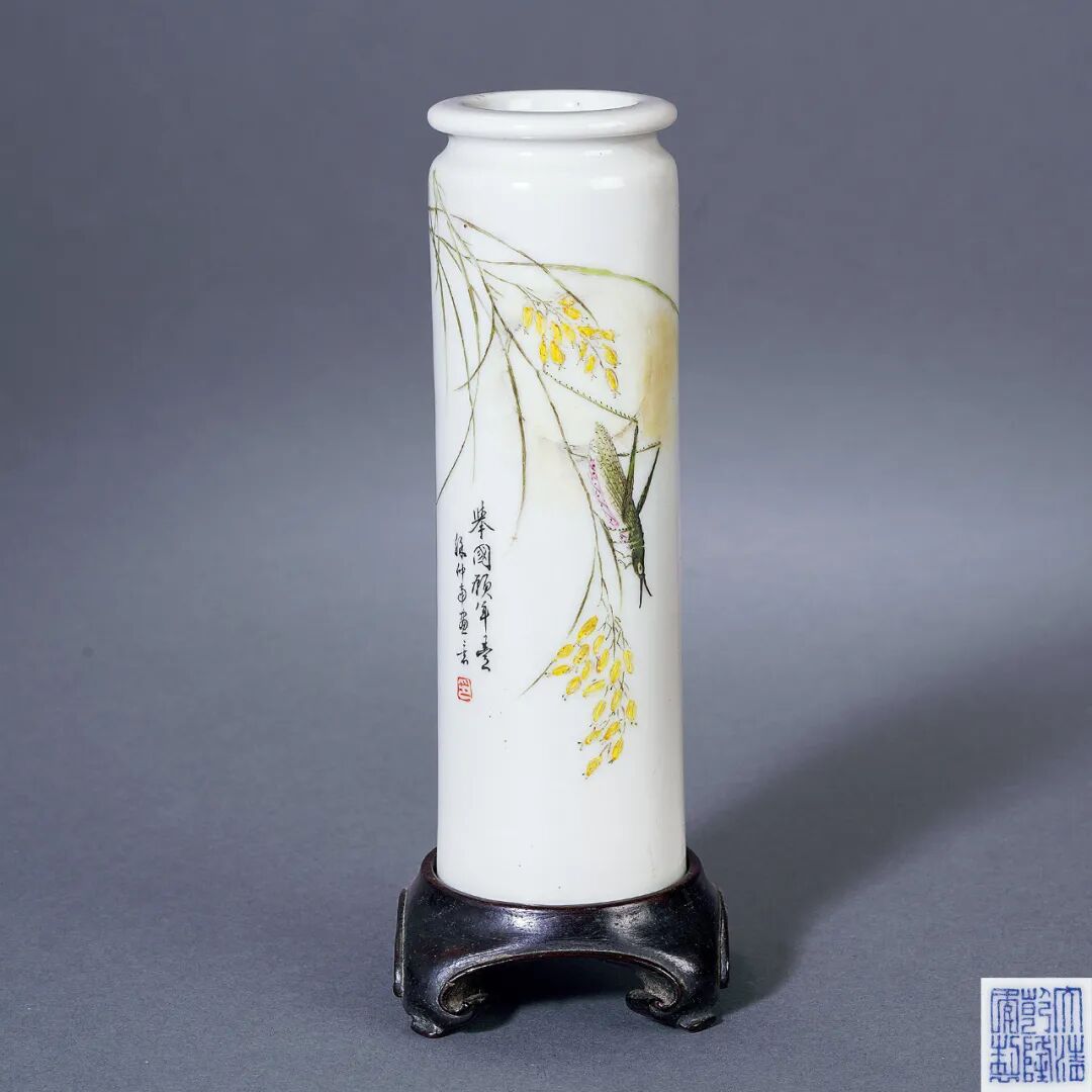 民国 徐仲南绘“秋虫”图筒瓶 高14.5cm