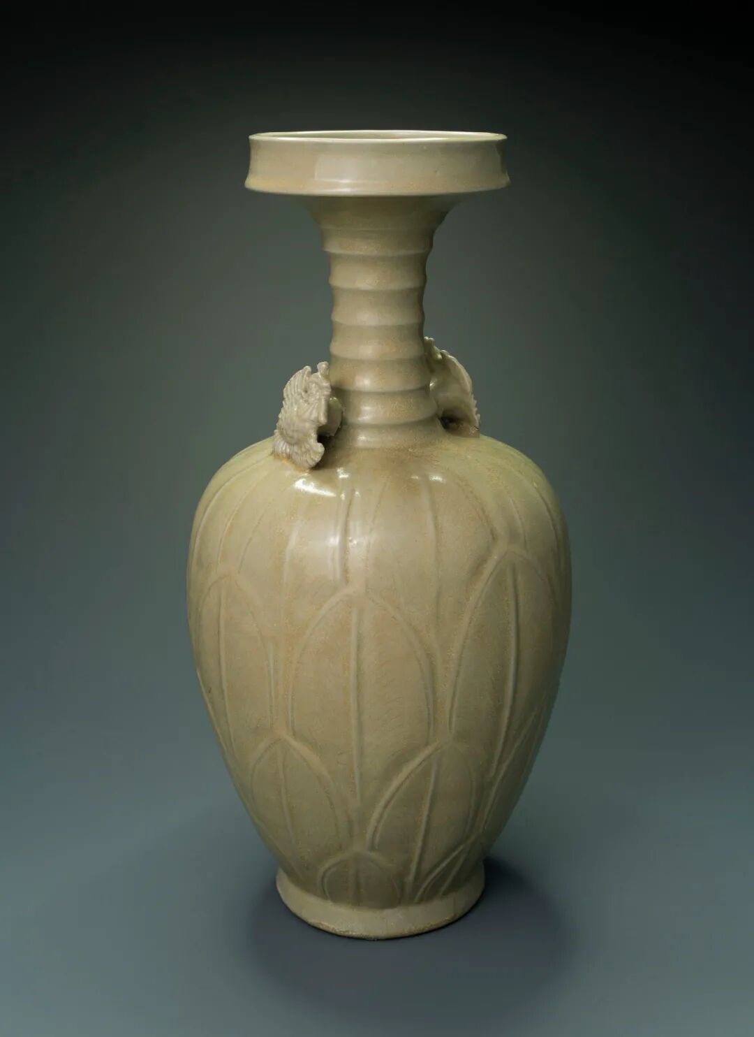 北宋 龙泉青瓷双凤耳弦纹盘口瓶 高323cm