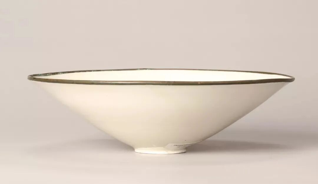 明定窑白釉刻划萱花大笠式碗 D:21cm