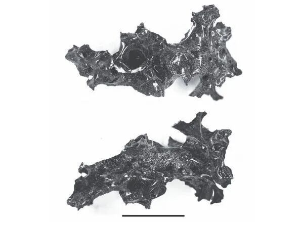 从公元79年火山爆发的受害者颅腔中提取的玻璃状黑色物质碎片。图/《新英格兰医学杂志》