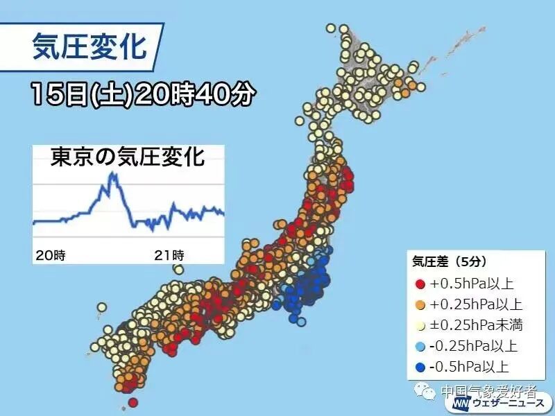 △汤加火山爆发已经造成了全球性影响,图为日本气压受到影响后的变化。图/中气爱